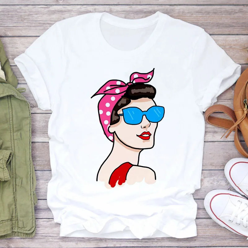 Летняя женская одежда в стиле Харадзюку, модная футболка с красивым принтом очков, Повседневная Уличная футболка, уютная белая футболка с коротким рукавом