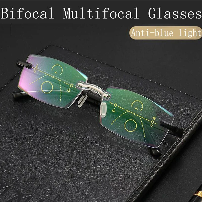 Очки для чтения, бифокальные, без оправы, с защитой от синего цвета