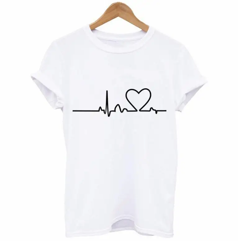 Женская футболка с принтом в виде сердца, с коротким рукавом и круглым вырезом, лето 2020