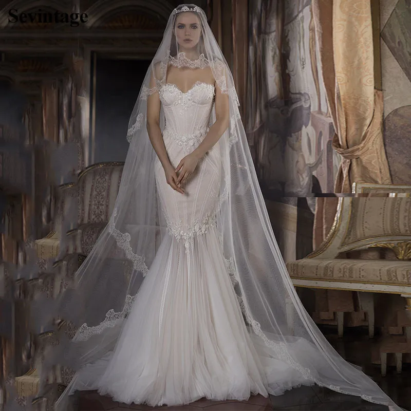 Sevintage 2 шт. свадебные платья русалки со съемным шлейфом с длинн...