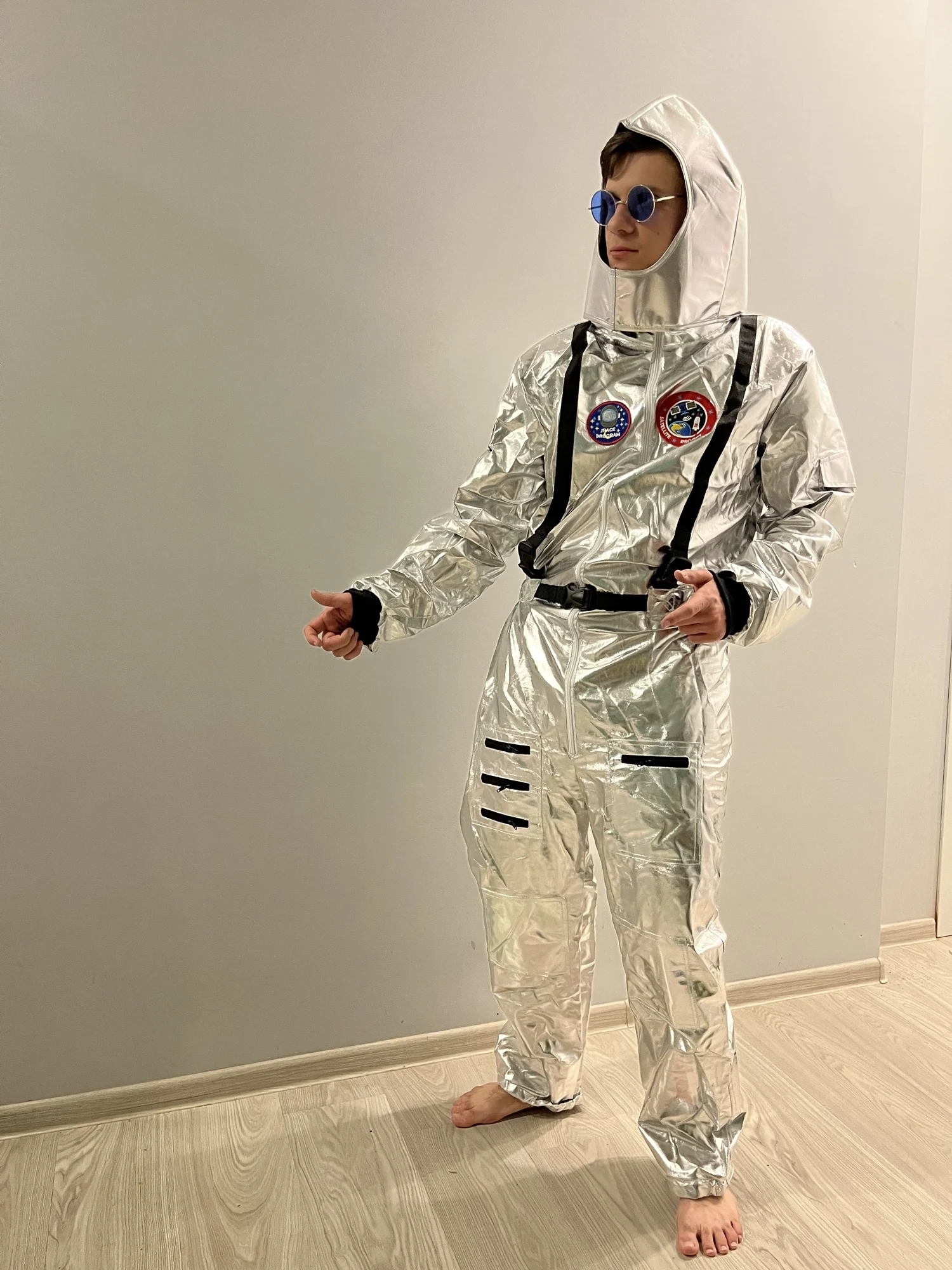 О шлеме: такой же материал, как и комбинезон, регулируемый (с липучкой)