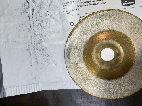 заказ пришел довольно быстро в иркутскую обл. достал я один диск , провел по нему пальцем - а "алмазы" обсыпаются..... не до ноля конечно, но осыпаются как песок (я не спорю - может и титановый порошок, хотя не очень то и похож)... как в работе пока незнаю, как опробую на вк8 или т15к10, там и дополню