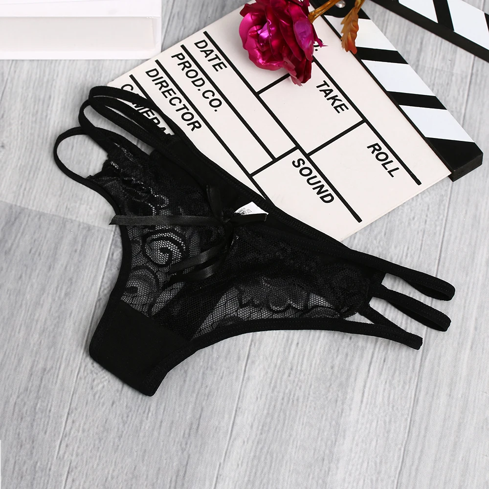 1 шт., сексуальное нижнее белье для женщин, ультратонкие кружевные трусики с бантиком и цветочным кружевом, эластичный ремешок, дизайнерские трусы, нижнее белье