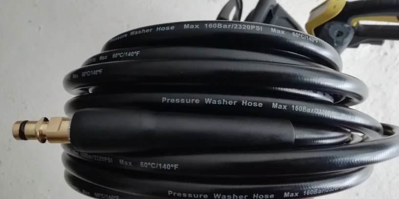 Немного жесткая, но хорошо работает. Немного сложно вставиться в женский наконечник Karcher. Я должен был перевернуть стороны, чтобы подключить его.