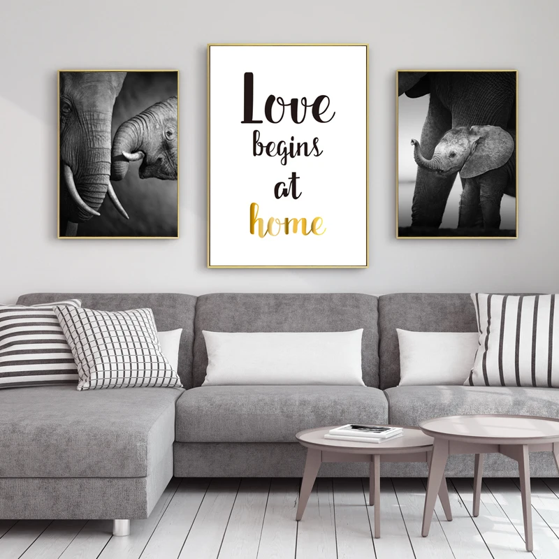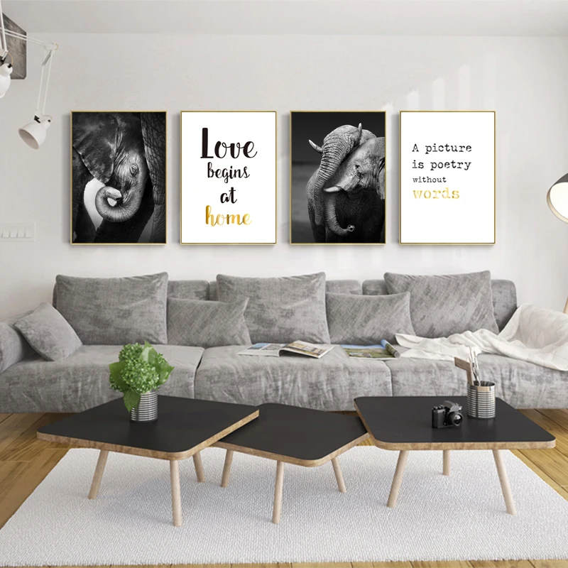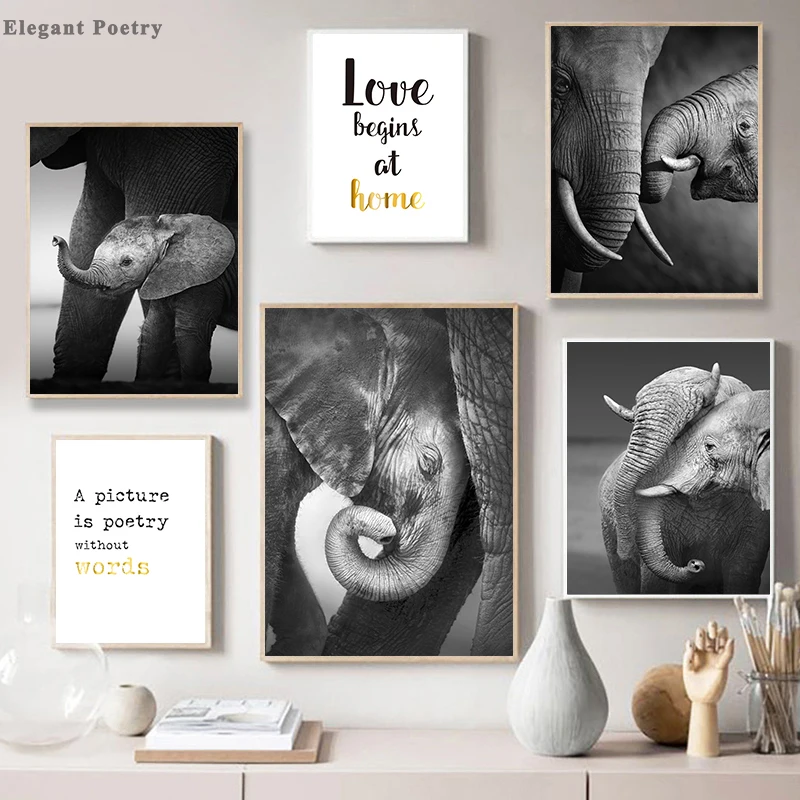 Современная Картина на холсте, постеры и принты в скандинавском стиле, украшение, черно-белый слон, животное, Настенная картина для гостиной