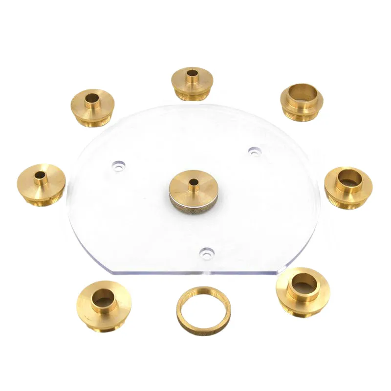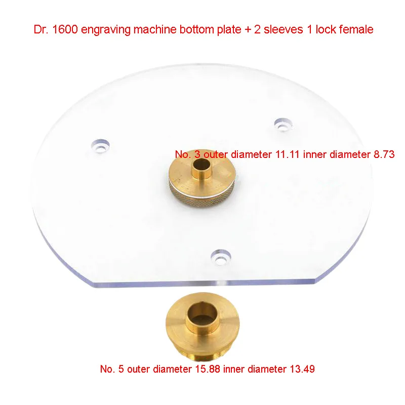 Bosch1600 гравировальная электромеханическая деревянная фрезерная Профилированная втулка Нижняя пластина из плексигласа + медная втулка Материал базовой пластины: оргстекло. Материал рукава вала: 59 меди [10 шт. 8 рукавов и 2 гайки замка] Характеристики нижней пластины: диаметр 180*5 мм, с более низкой разницей. Диаметр сквозного отверстия 30 мм, а диаметр столешницы 35 мм. Подходит только для гравировального Станка Dr. 1600.