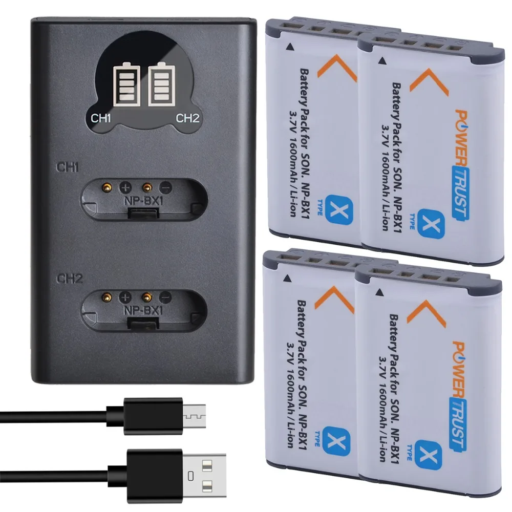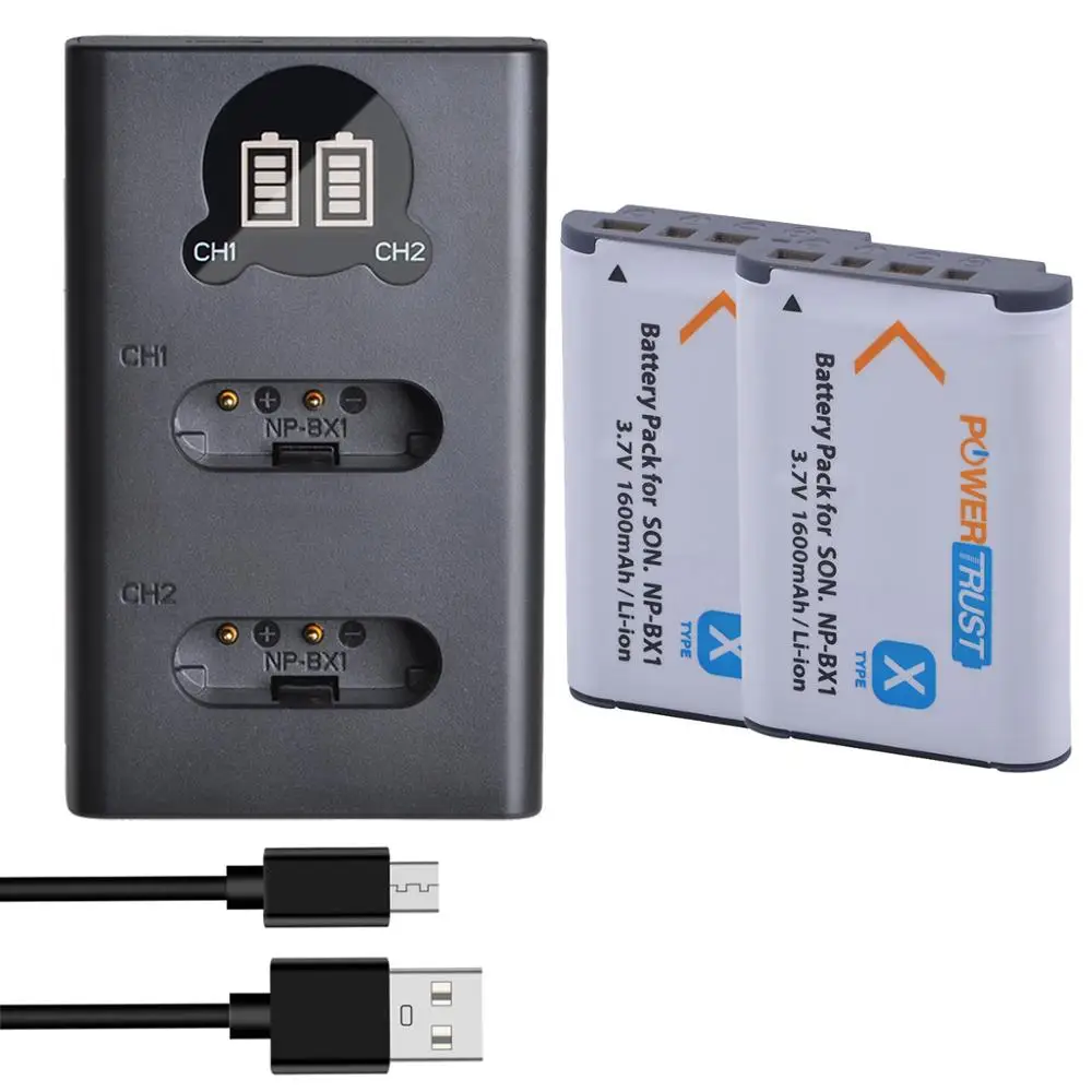 PowerTrust 1600 мАч NP-BX1 NP BX1 батарея + LED USB двойное зарядное устройство для Sony DSC RX1 RX100 AS100V M3 M2 HX300 HX400 HX50 HX60 GWP88 AS15 WX350 ZV-1