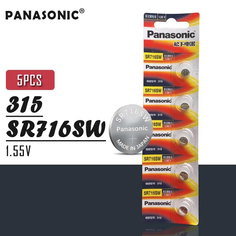 Оригинальный аккумулятор Panasonic 7,8*1,6 мм, 5 шт., 1,55 в, SR716SW, оксид серебра, часы, 315, V315, SR67, D315, кнопочные батареи, сделано в Японии