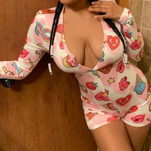 Женская пижама, трико в обтяжку, шорты-комбинезон, стрейч, с V-образным вырезом, сексуальная, цельный, с принтом, ночной халат