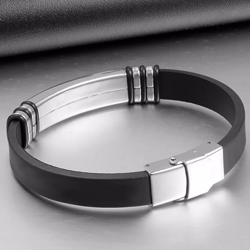 Силиконовые браслеты для мужчин браслет вдохновляющий гравируемый из нержавеющей стали ID ювелирные изделия