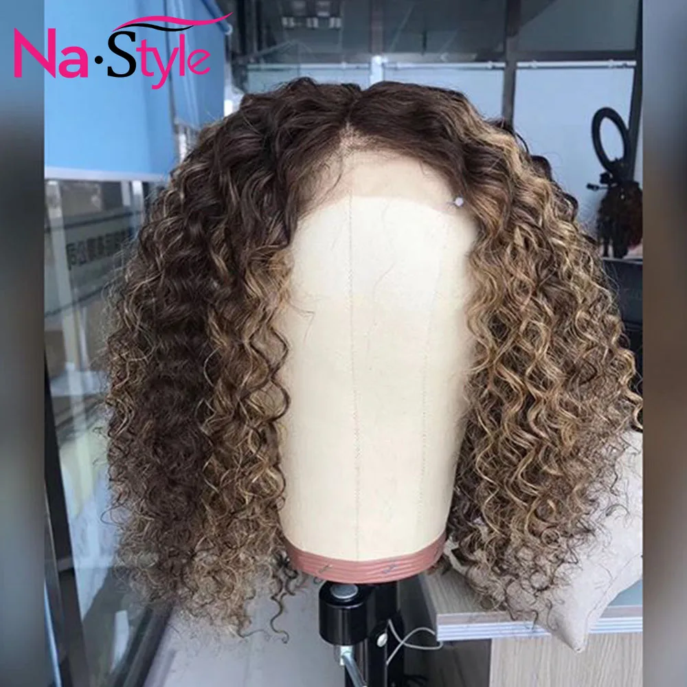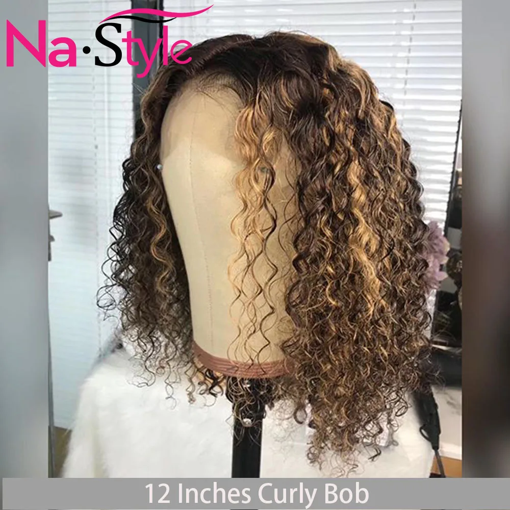 Парик из человеческих волос Омбре для чернокожих женщин, короткий вьющийся парик из человеческих волос 13x6, бесклеевая, выбеленная, 180%