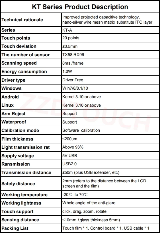 Packing ListTouch film * 1 , Control board * 1, USB cable * 1