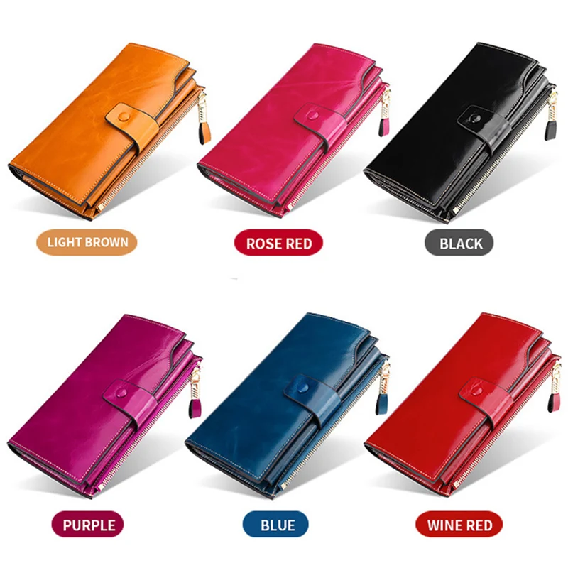 Роскошный женский длинный кошелек из вощеной воловьей кожи 2019 AW,...