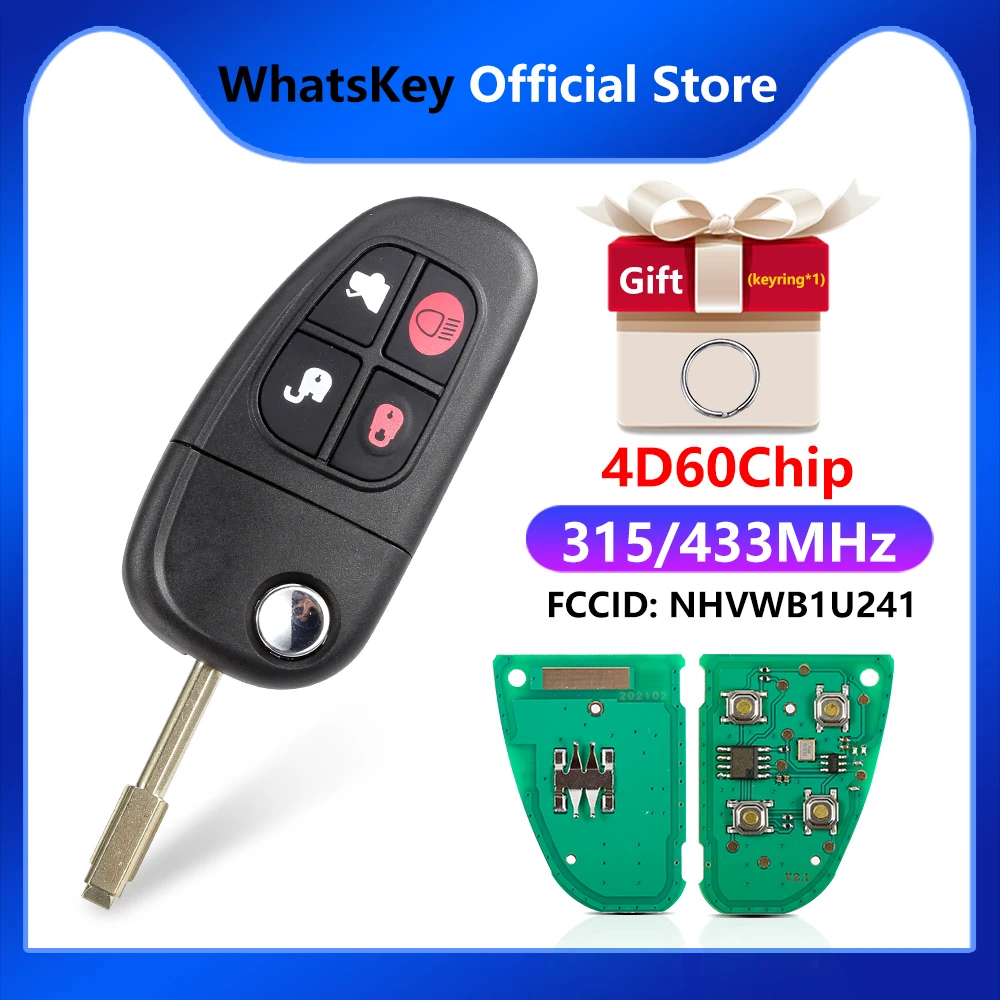 Разработчик оборудовния №.WhatsKey 4 Button Flip Remote 315/433MHz 4D60 Chip Key For Jaguar X-Type S-Type 1999-2009 XF XJ XE XJR FO21 Blade NHVWB1U241