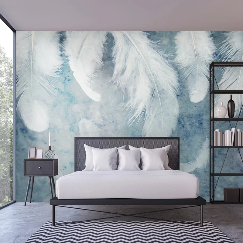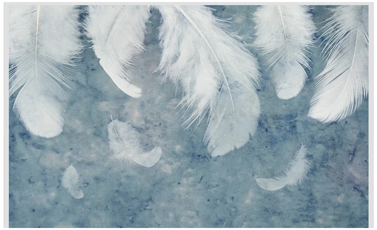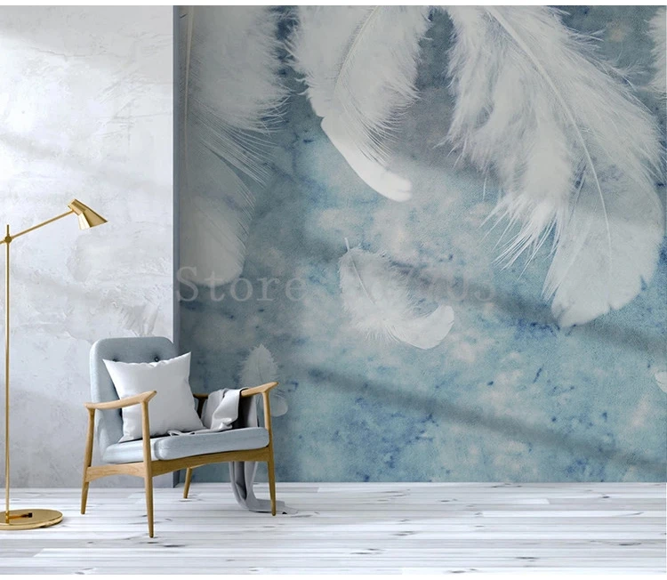 Фотообои на заказ, скандинавские красивые синие акварельные перышки, настенная живопись, декор для гостиной, спальни, телевизора