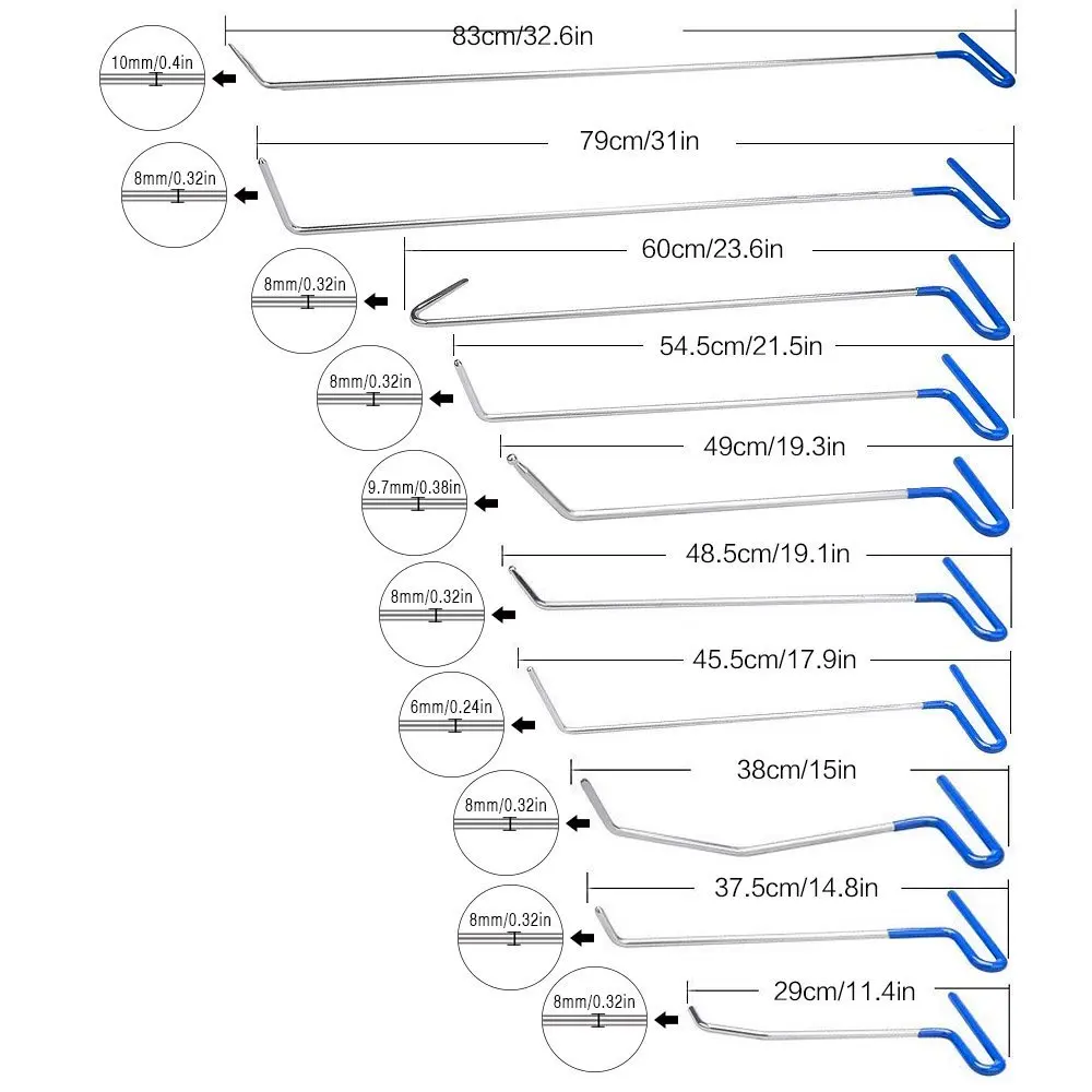 Стержни, набор инструментов для ремонта вмятин без покраски, удаление вмятин и удаление вмятин на дверях с помощью крючков для стержней, удаление вмятин на кузове автомобиля
