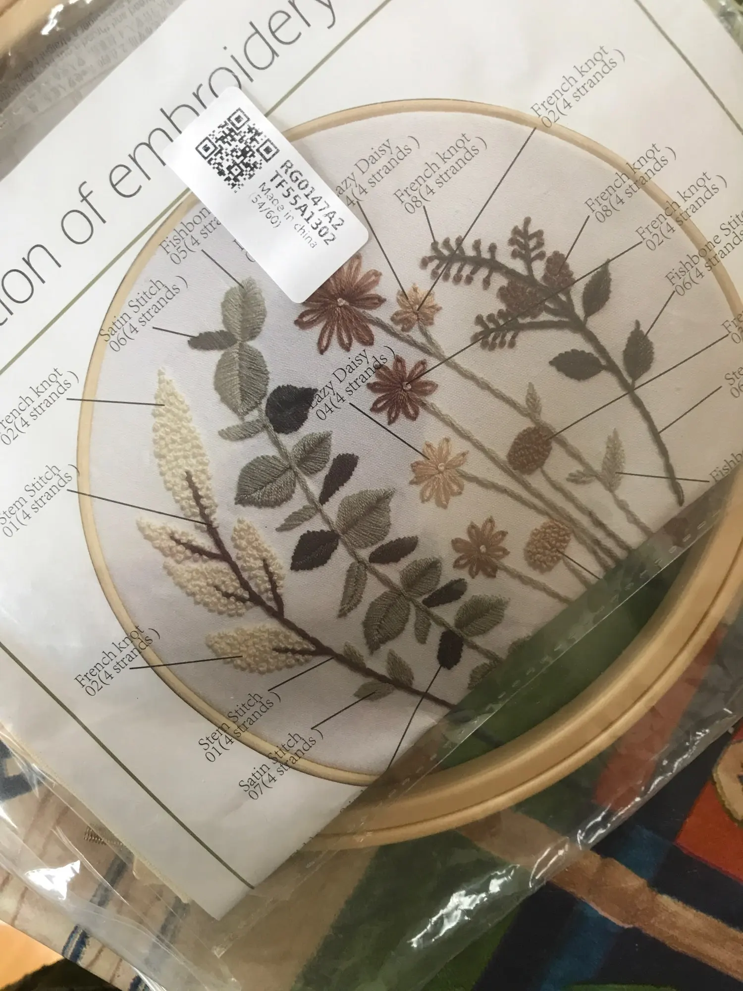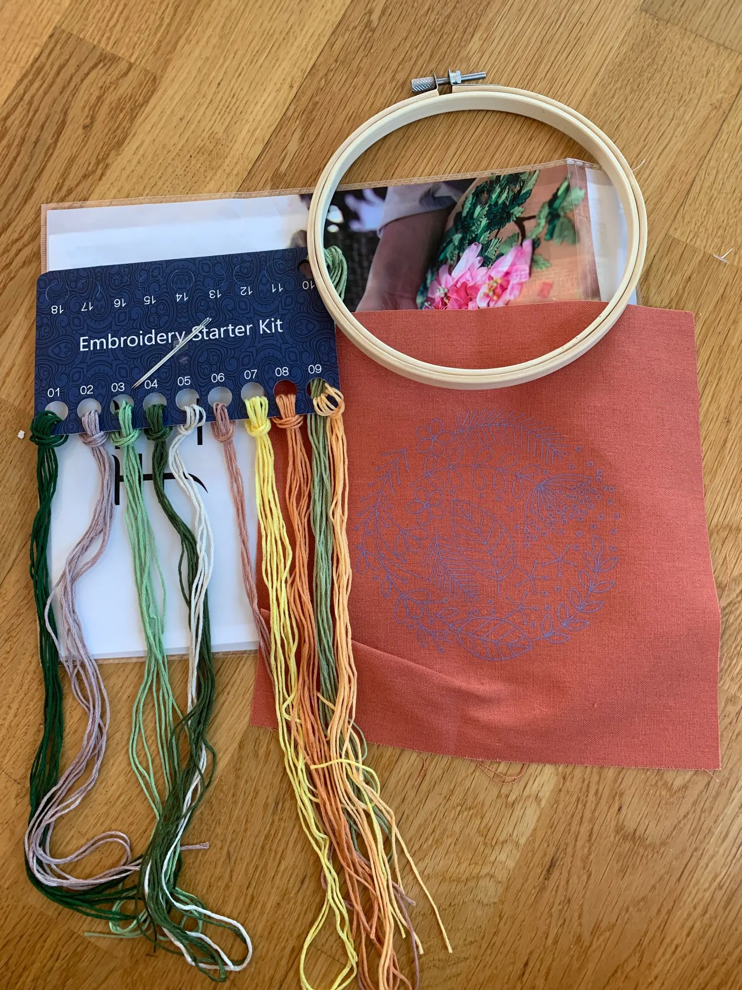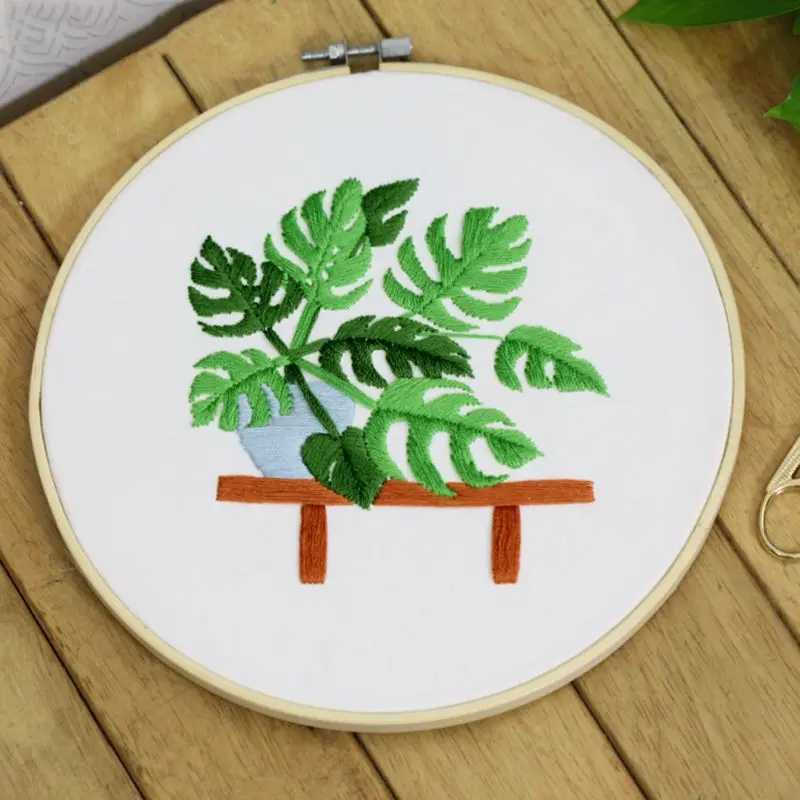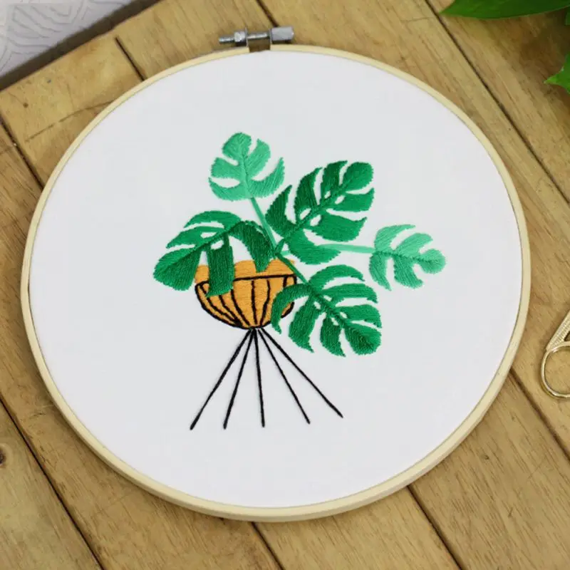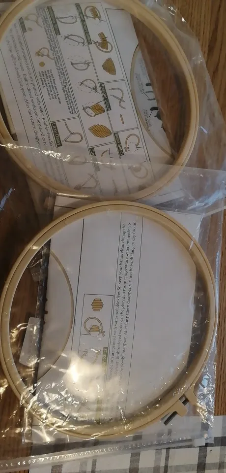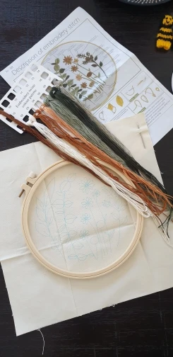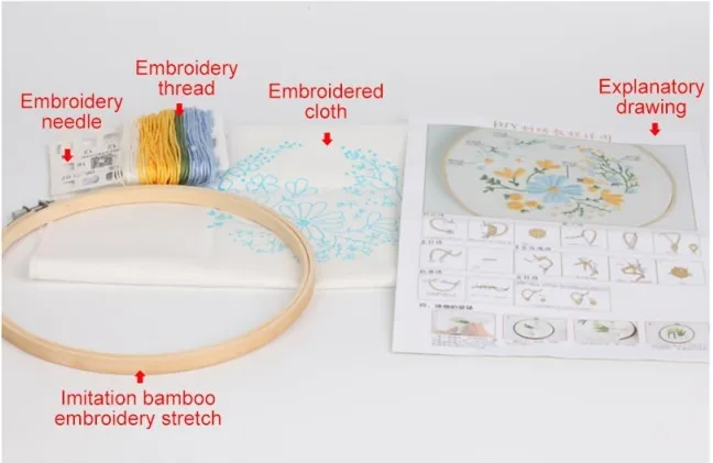 מגיע בד מודפס, חוטים, מחטים וחישוק מתאים למתחילים - רמה קלה