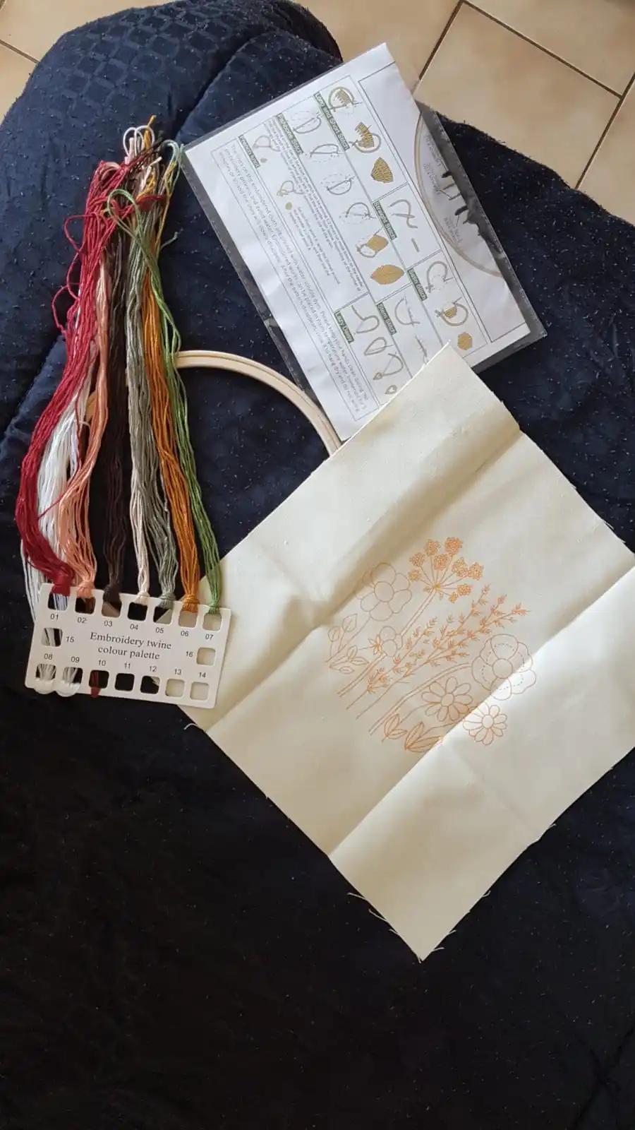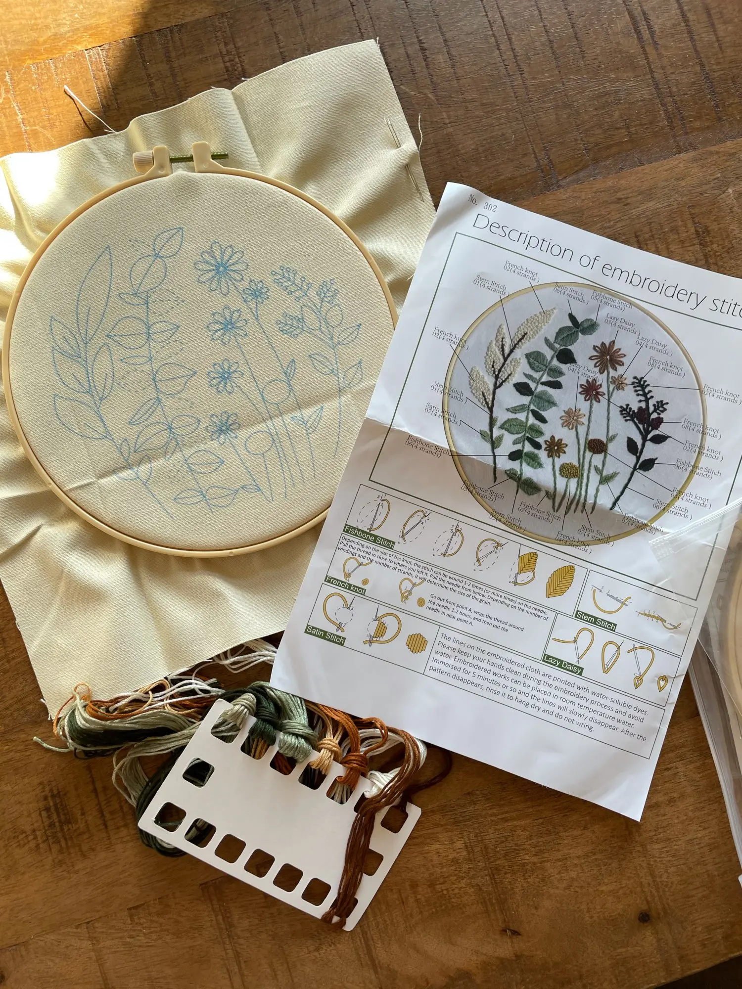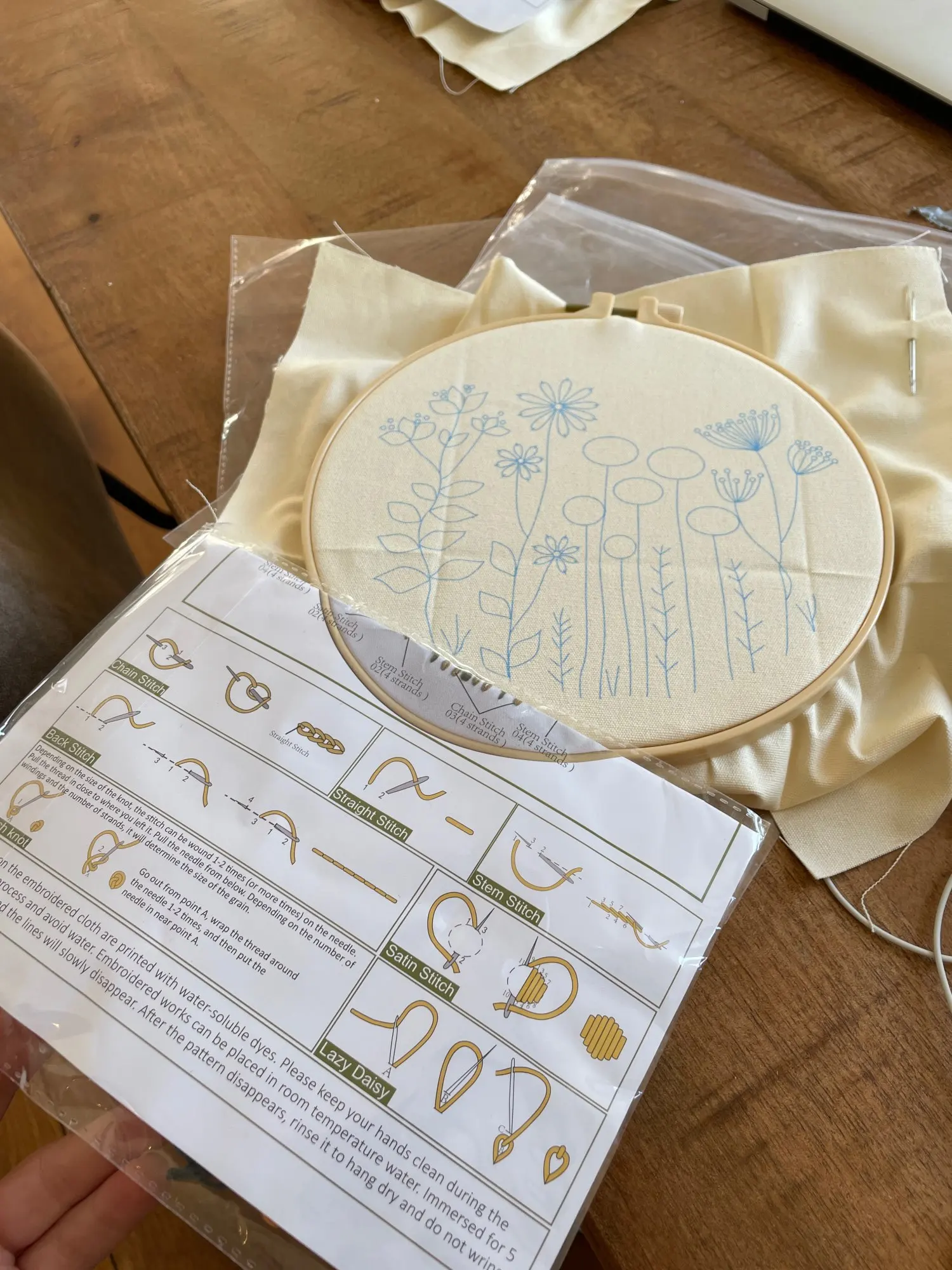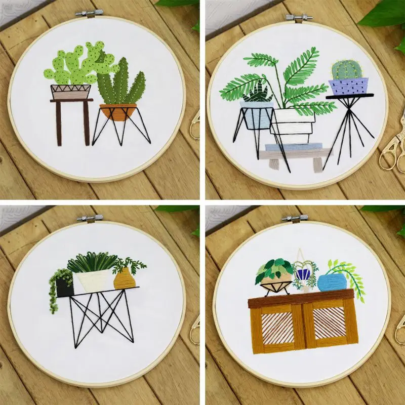 מגיע בד מודפס, חוטים, מחטים וחישוק מתאים למתחילים - רמה קלה
