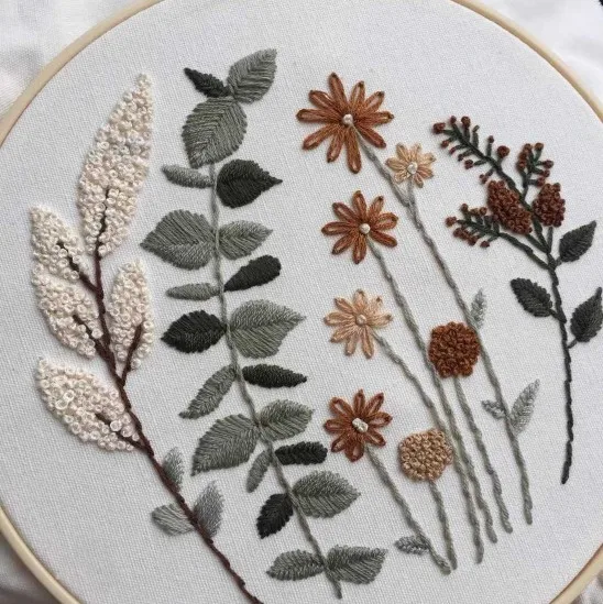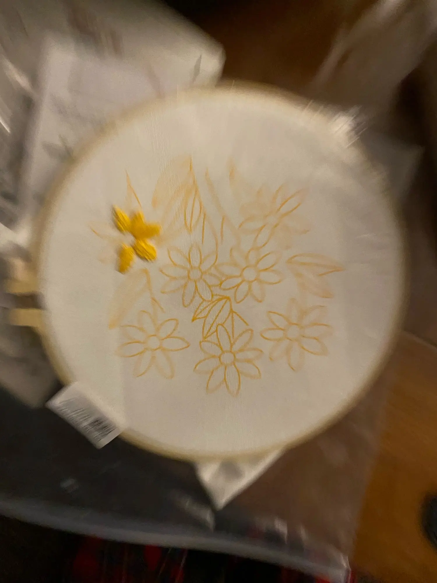 Вышитый обруч не белый, как на фотографиях, а более желтый. Не хватило белой проволоки и слишком много других цветов.