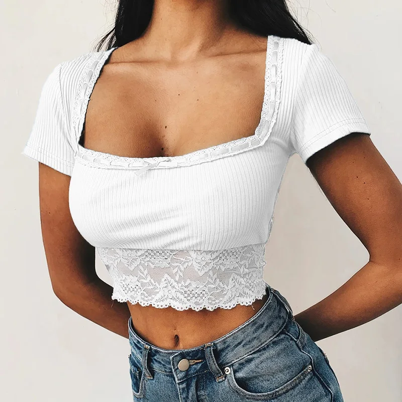 Топ женский WannaThis, с коротким рукавом и вырезом-лодочкой, на шнуровке
