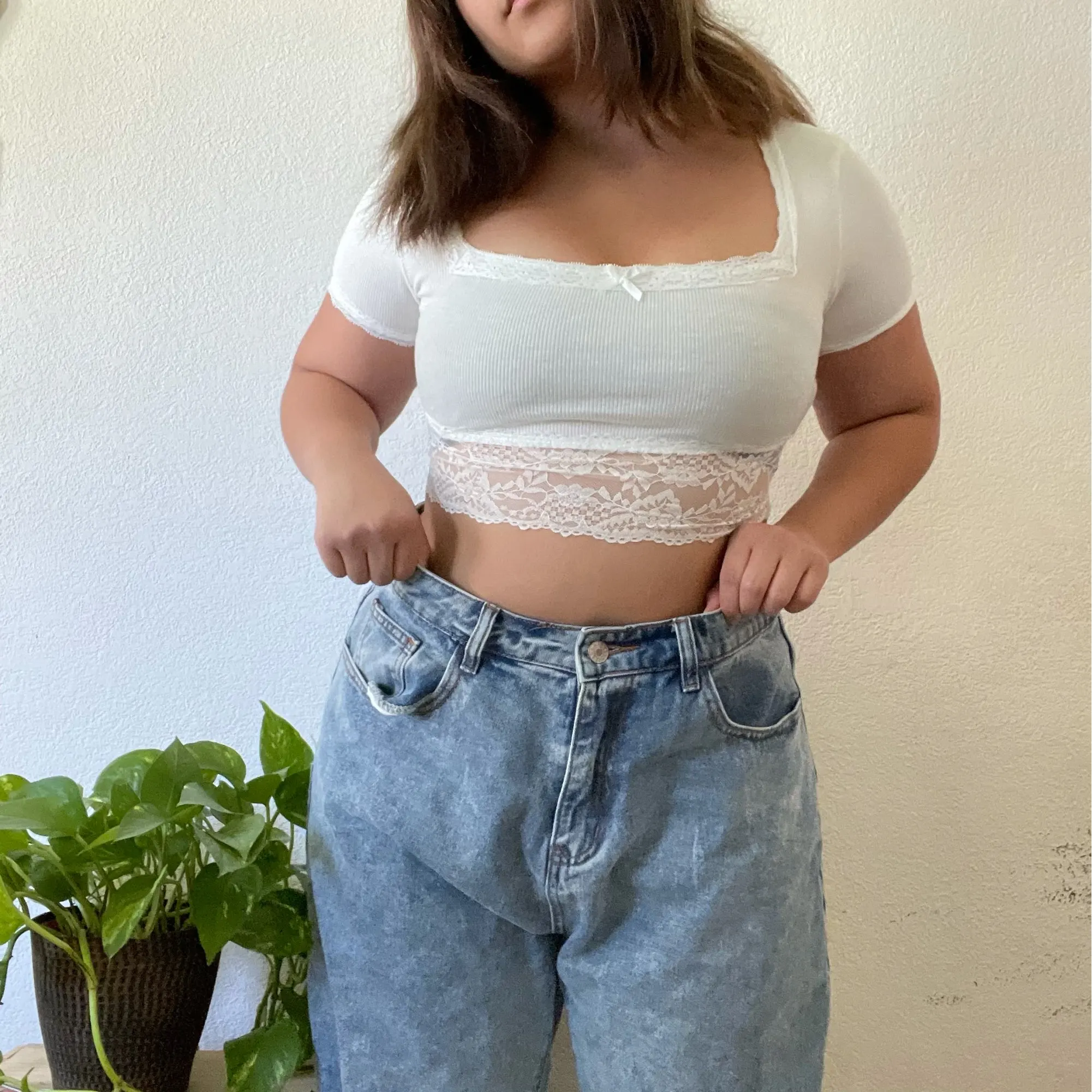 Красивый топ, чтобы охладиться, но когда вы положите руки вверх, кружева скользят по всей поверхности ваших сосков.