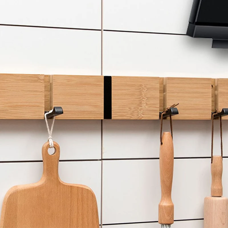 Настенный крючок для одежды, вешалка для одежды из натурального бамбука и алюминия, домашняя полка для хранения ключей