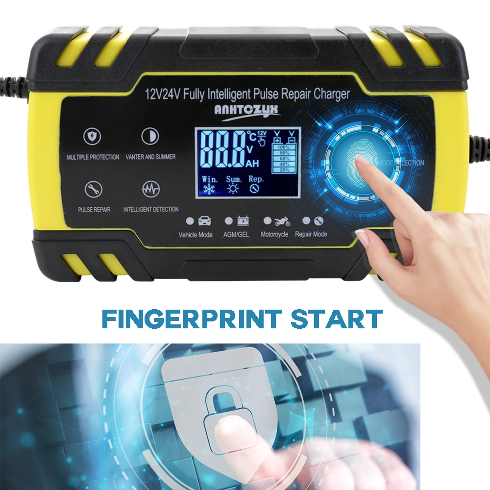 Особенности: 12 В 24 В Автоматическая идентификация, нажатие кнопки для запуска/остановки, высокая чувствительность и звук кнопки. Защита от перезаряда, высокой температуры, перегрузки по току, обратного подключения, короткого замыкания и перенапряжения. Автоматический переключатель летнего режима и зимнего режима, более 28 градусов автоматический вход в летний режим, менее 10 градусов автоматический переключатель в зимний режим. Нажмите один раз для ремонта и активации вас сотовый с 5-ти ступенчатый дисплей питания 20%, 40%, 60%, 80% и вы можете полностью зарядить. Интеллектуальный цифровой дисплей, вы можете четко видеть электричество, ток, температуру и процесс c-harging. Компактный, легкий и портативный, легко носить с собой. Наружный материал изготовлен из АБС-пластика, теплоизоляционного и защитного, высокотемпературного. Подключи и работай, прост в использовании. Зажим аллигатора изготовлен из меди и алюминия и имеет хорошую электропроводность. Поставляется с 2 большими вентиляционными отверстиями, может продлить срок службы этого c-harger.