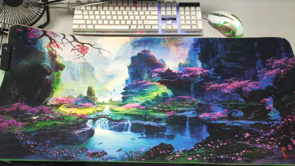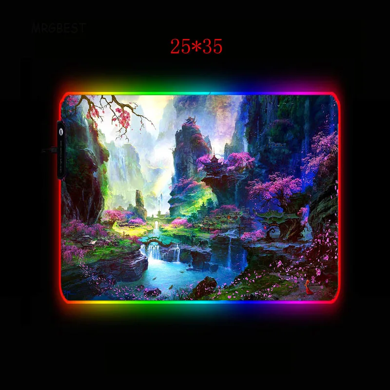 Большой игровой коврик для мыши MRGBEST с цветами, лесным пейзажем, RGB, геймерский светодиодный компьютерный коврик для мыши, большой коврик с подсветкой для клавиатуры, Настольный коврик