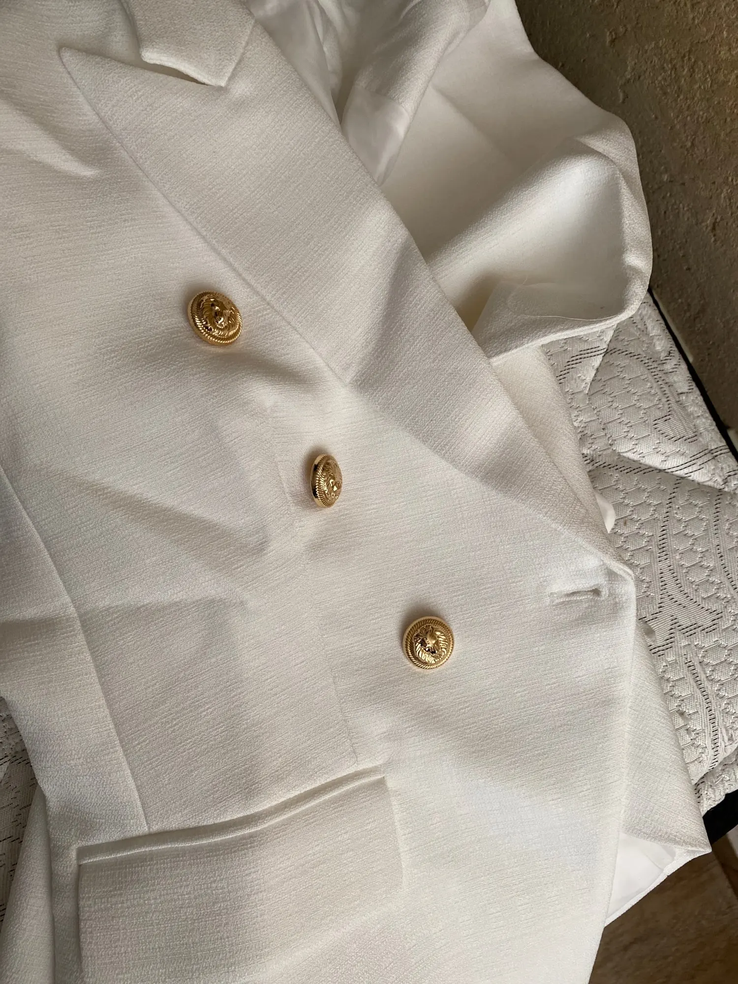 Женский двубортный Блейзер, приталенный Блейзер с металлическими пуговицами в стиле барокко, 2021