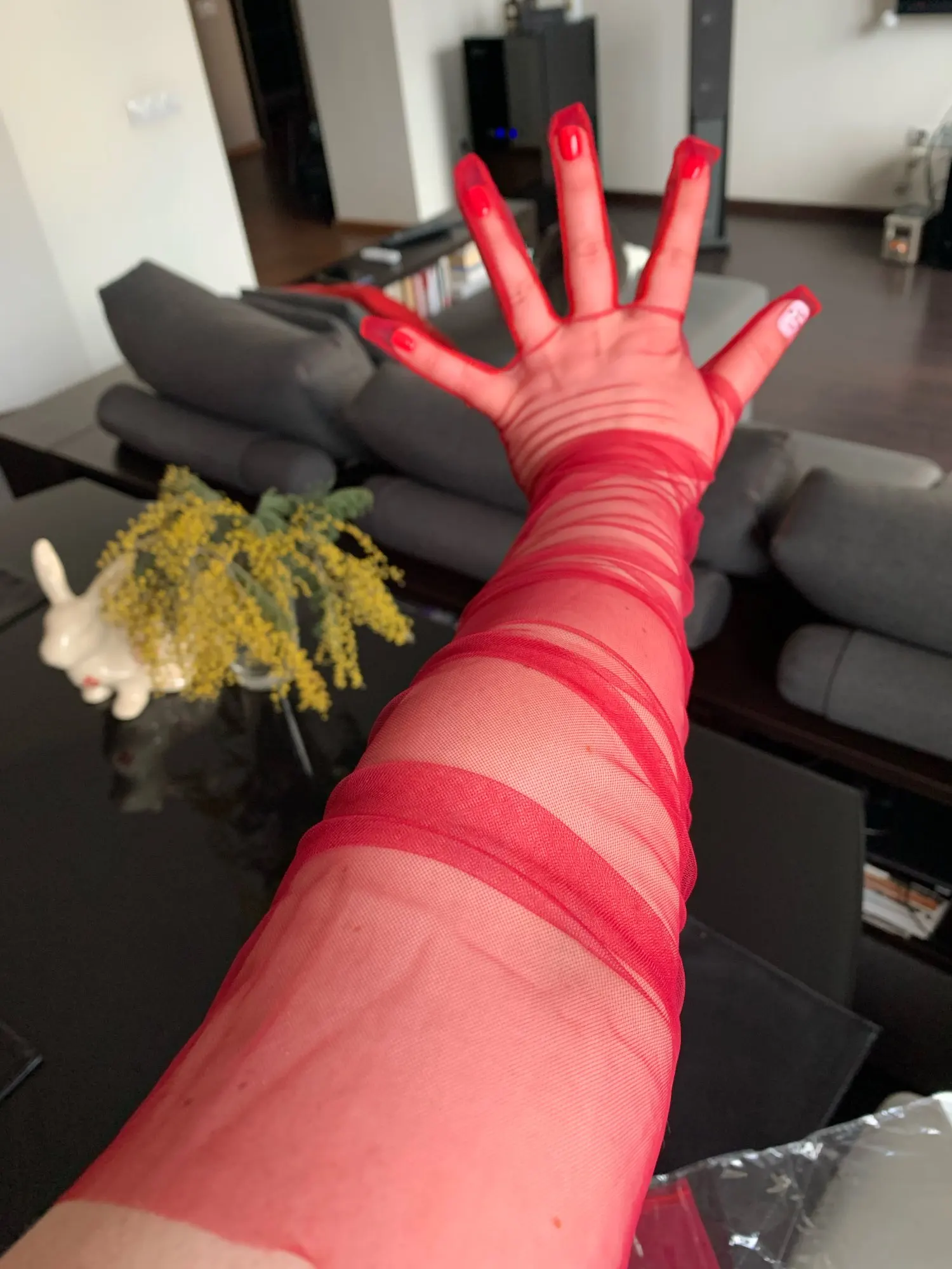 Перчатки длинные, все как на фото! Пришли быстро.