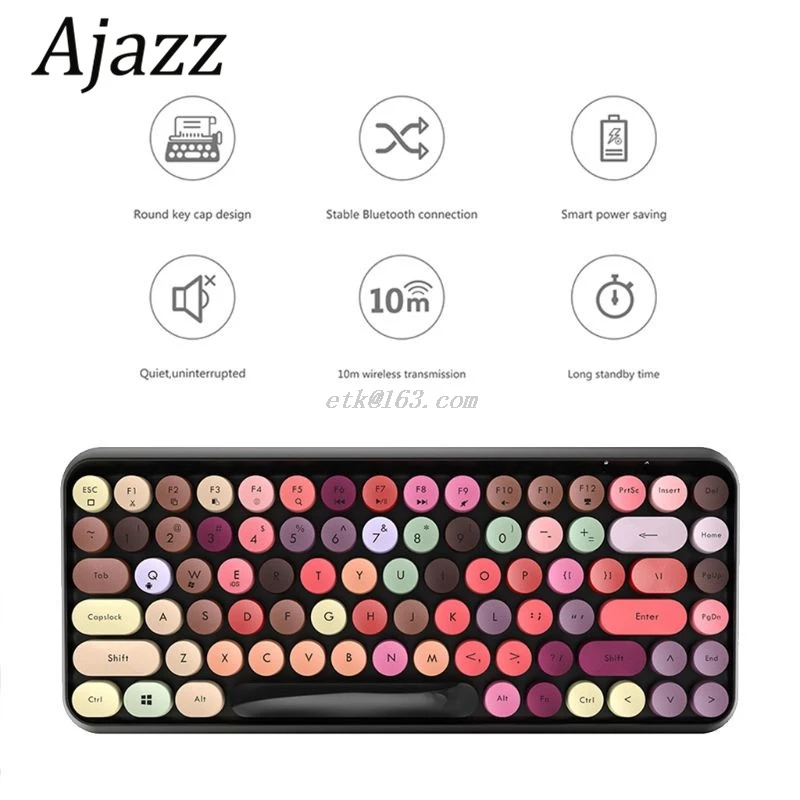Ajazz 308i Беспроводная bluetooth-клавиатура с круглой клавишей, игровая клавиатура с 84 кнопками для iPhone/систем An-droid/Windows