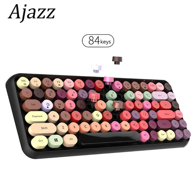 Ajazz 308i BT Беспроводной клавиатура круглый ключ Кепки 10m BT Kyeboard соединение 84 клавиши клавиатуры для портативных ПК различных систем