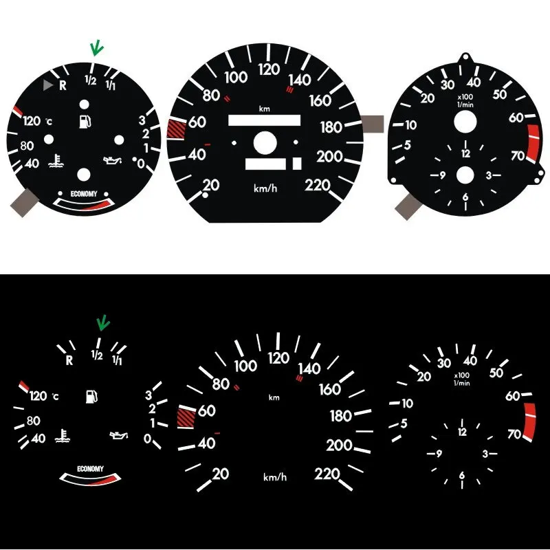 Тире B-J-L 220 км Пособия по экономике для W124 W126 W201 190E EL светящийся калибра черная Панель белый свет (1322133K)