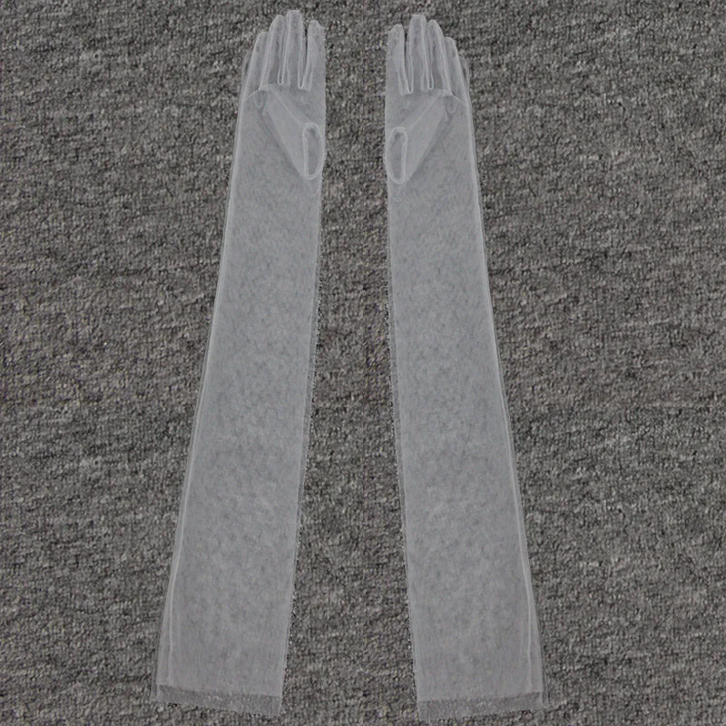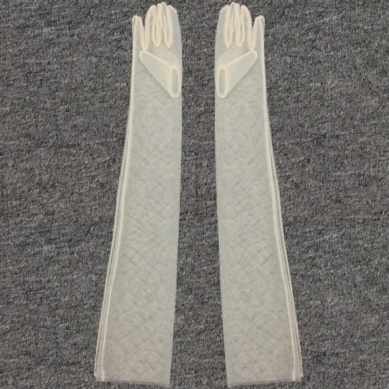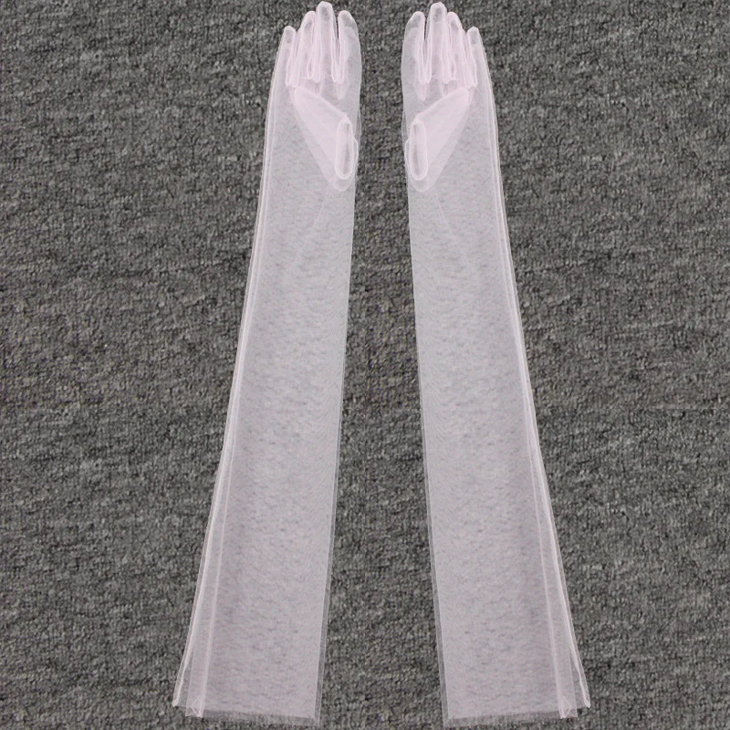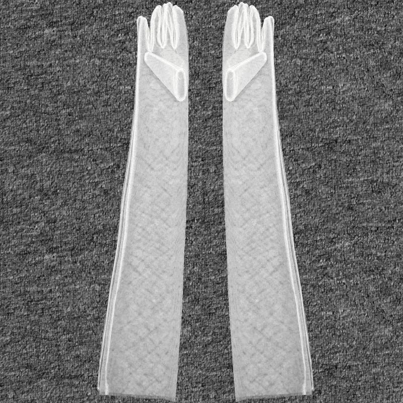 Длинные прозрачные тюлевые перчатки, свадебные перчатки для невесты, модные однотонные прозрачные ультратонкие рукавицы, Свадебные Длинные перчатки до локтя