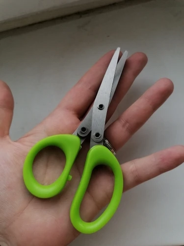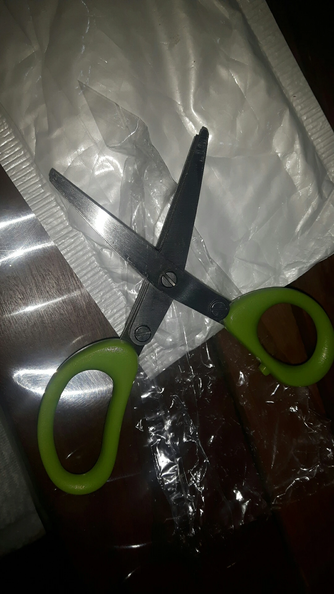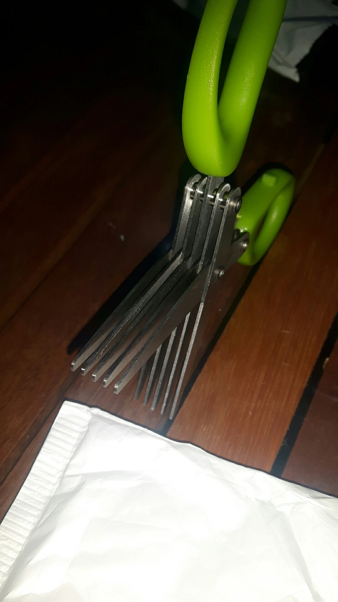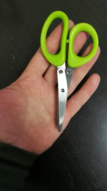 Доставка товара занимает около 4 недель. Австралия 5-слойные ножницы на самом деле довольно маленькие, А также не то, что sharp. Я могу нарезать только тонкие листья, например. Чипсы, весенний лук. Все более толстые, например, листья Василия и т. Д. Ножницы борются. Листья застревают внутри ножниц, Но за эту цену, все в порядке.