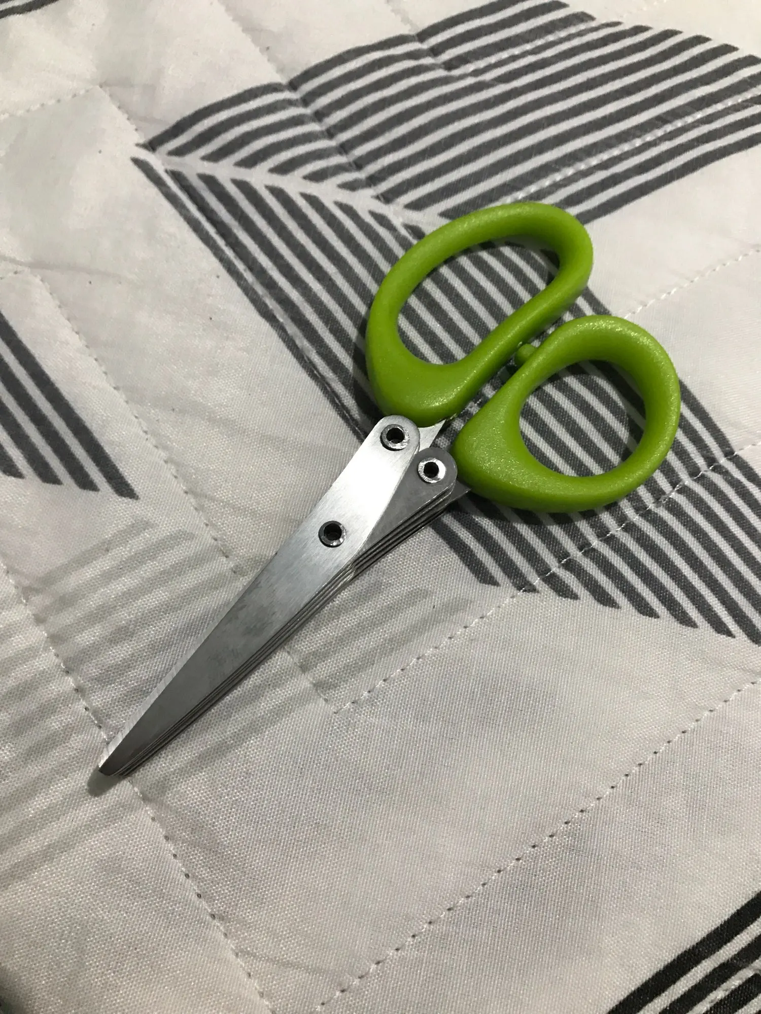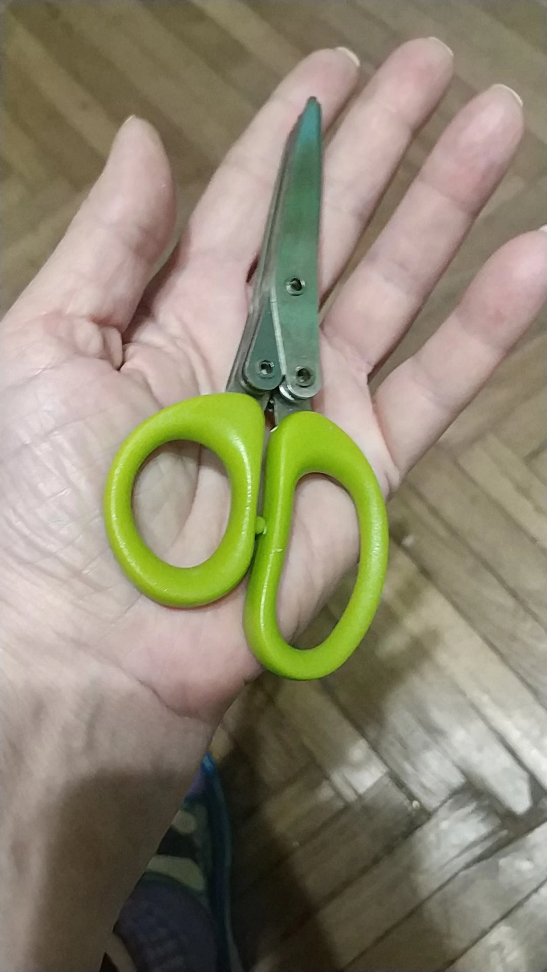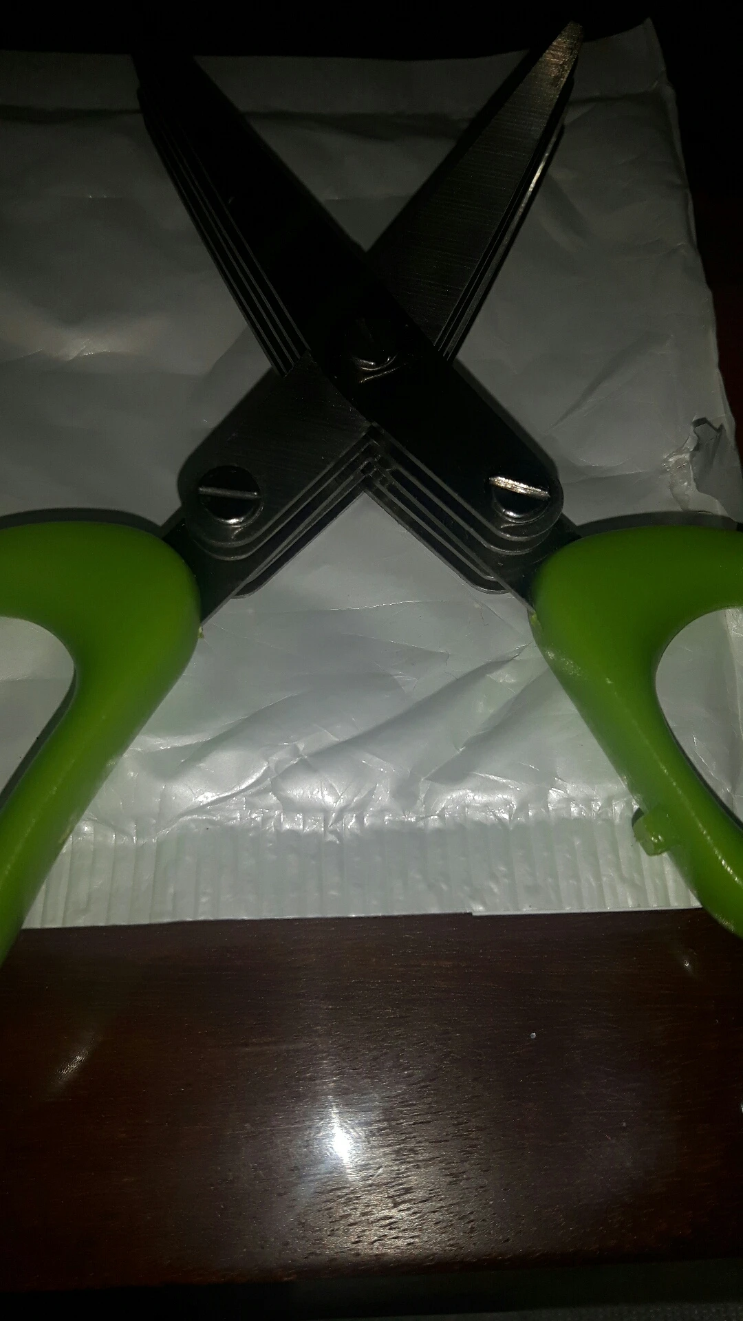 Доставка товара занимает около 4 недель. Австралия 5-слойные ножницы на самом деле довольно маленькие, А также не то, что sharp. Я могу нарезать только тонкие листья, например. Чипсы, весенний лук. Все более толстые, например, листья Василия и т. Д. Ножницы борются. Листья застревают внутри ножниц, Но за эту цену, все в порядке.