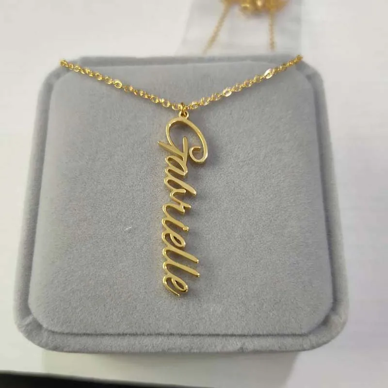Нержавеющая сталь индивидуальное имя для женщин персонализированное Вертикальная подвеска имя золотой цвет ювелирные изделия День рождения индивидуальный подарок BFF