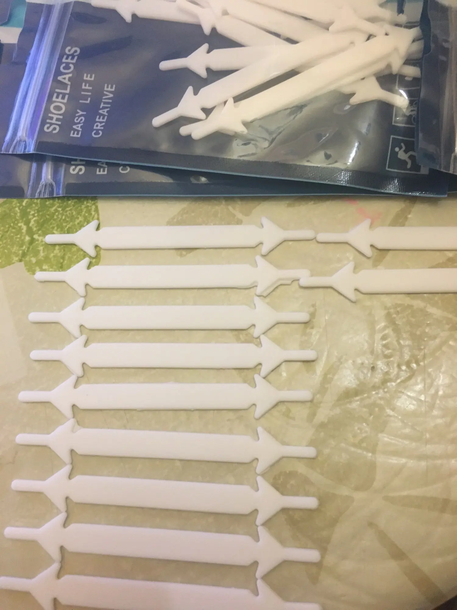 Длина одинаковая, носы зашнуровал крест на крест, выше параллельно, для равномерной плотности. Кончики выперают, немного мешают.