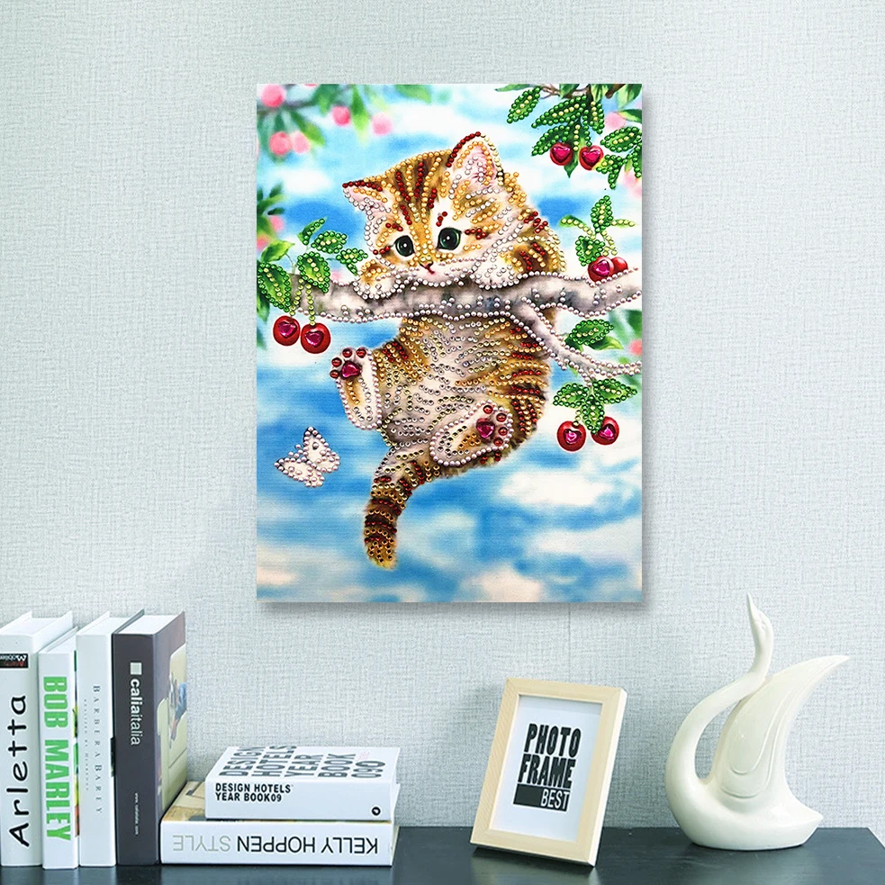 Высокое качество милый кот залезл по дереву алмазная живопись особой формы рукоделие Стразы 5D алмазная живопись