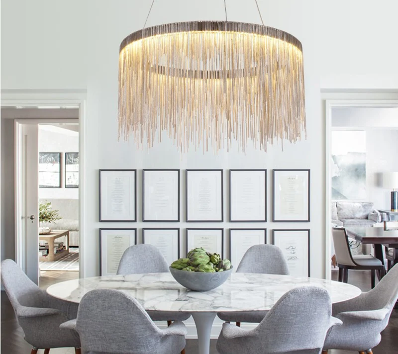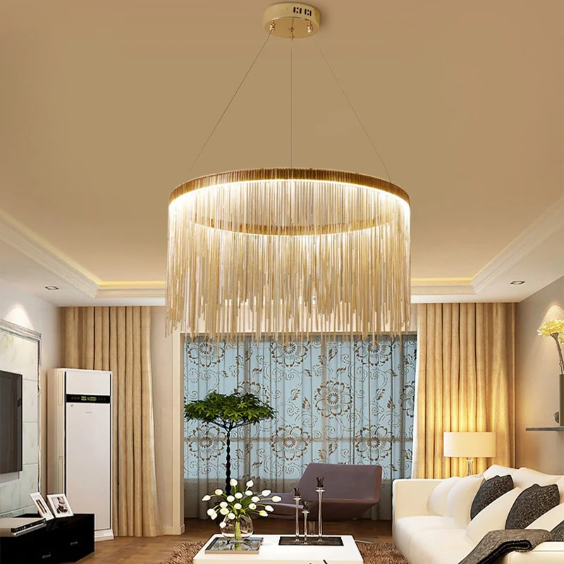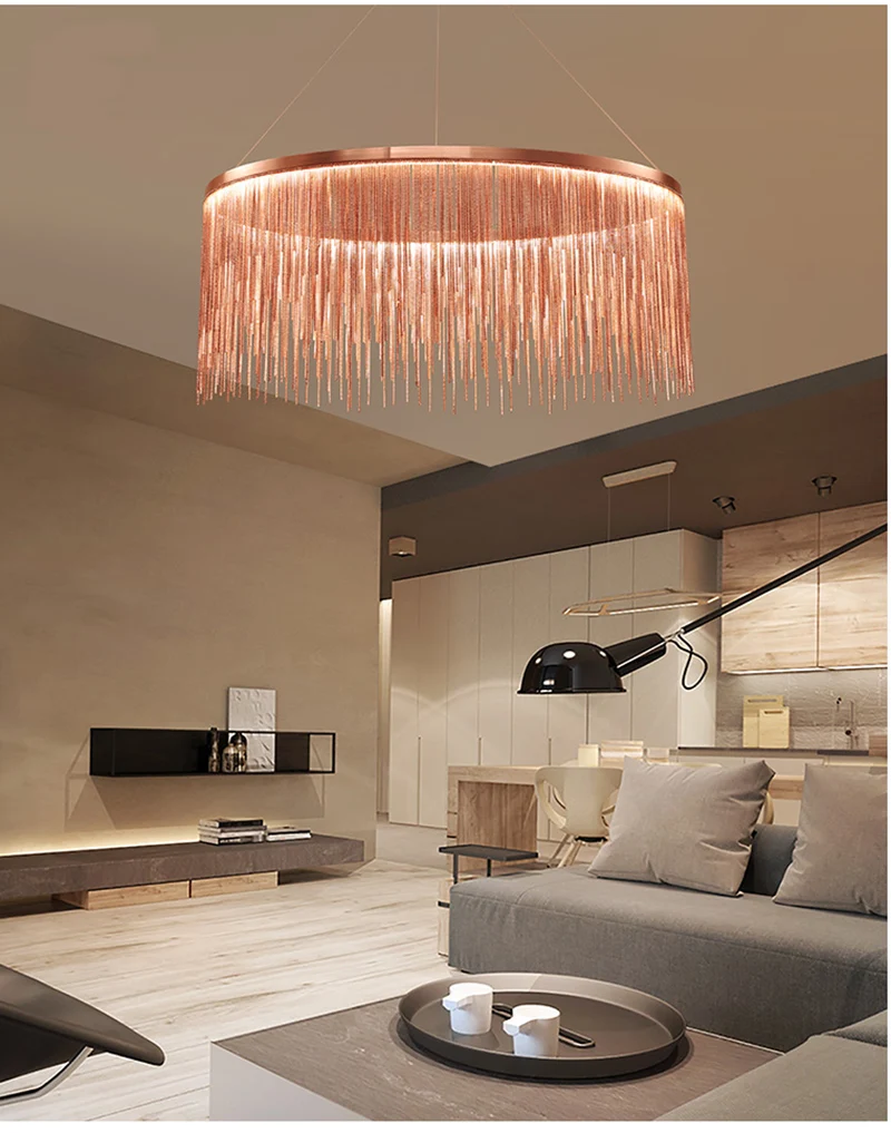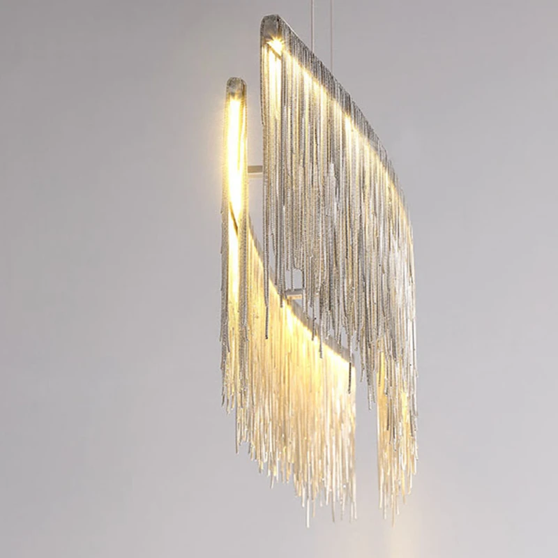 Потолочная люстра в стиле постмодерн, алюминиевая цепь с кисточками, роскошные светодиодные подвесные светильники, осветительные приборы
