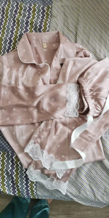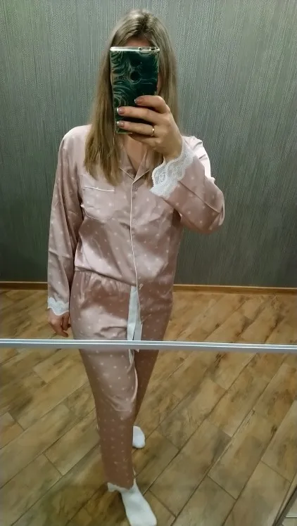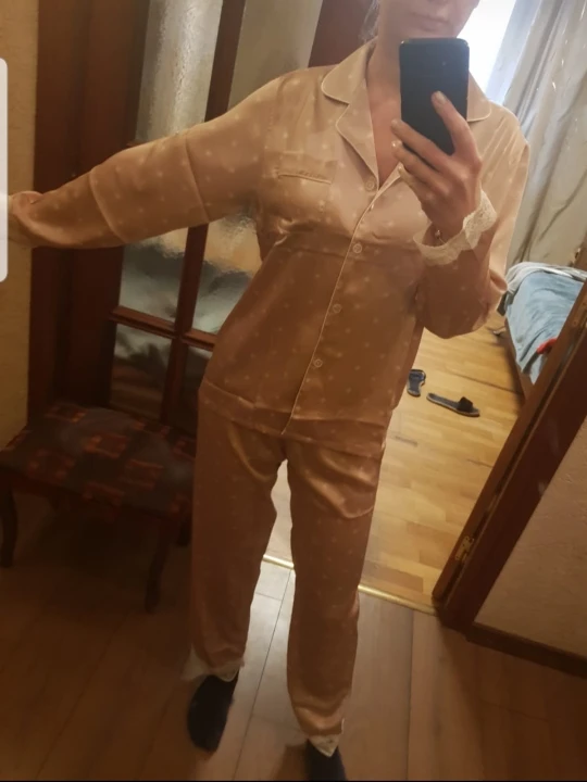 это просто выше всех похвал, много раз заказывала пижамы с Али ,но обычно это были не дорогие модели и особо фоткать нечего было, почти все продала , материал -" стекловата"невыносимо носить ,как пакет к телу. но эта пижама это прям любовь, она хоть и синтетика, но не такая как обычно приходило, пижамка очень нежная, тонкая как шелк, приятная к телу, мягкая, не парит, не шуршит,не липнет, балдежжж ну про визуал вообще молчу, очень красивая, смотрится дороже своей стоимости, сплошной восторг, заказала вторую такую розовую. мои параметры: рост -168, он -92, от -75,об-93, заказала размер Л (судя по отзывам) и не ошиблась, пришла на этикетке указан Л ,но по параметрам М ка. немного свободная как и должна быть одежда для сна, для комфортного отдыха. всем рекомендую! посылка пришла в Украину за 10 дней