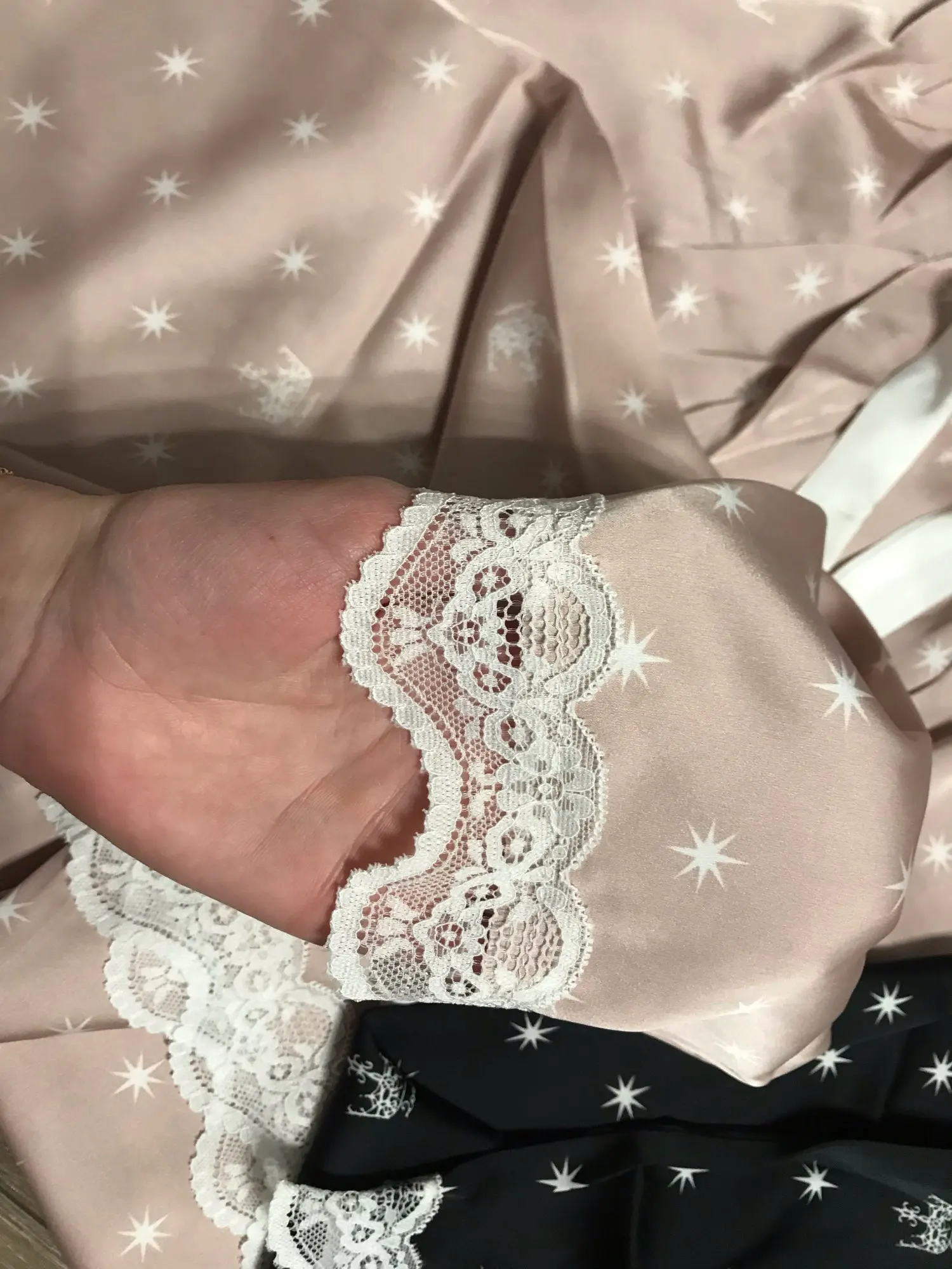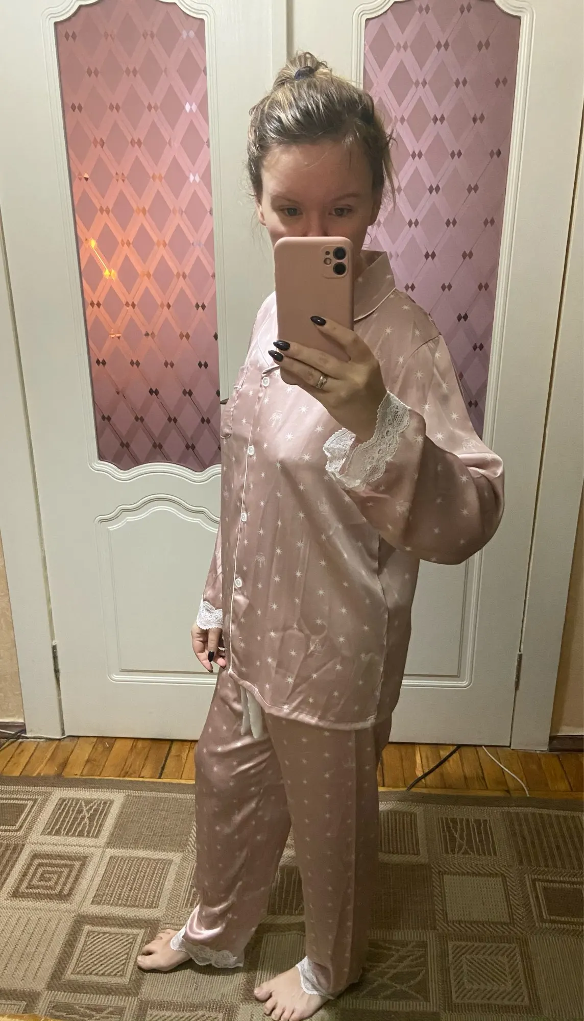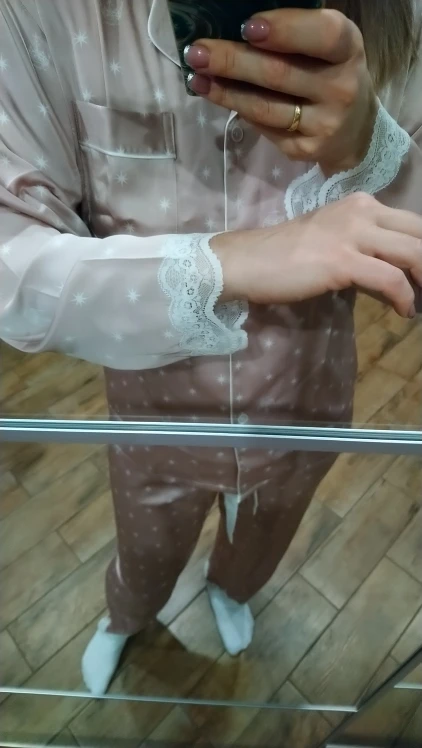 Это нереально красивая пижама, я просто в восторге, нет слов!!! Идеальный пошив, идеальная ткань, по тактильным ощущениям это шёлк ! Французское кружево на высшем уровне! Спасибо большое продавцу за такое внимательное отношение к покупателю !