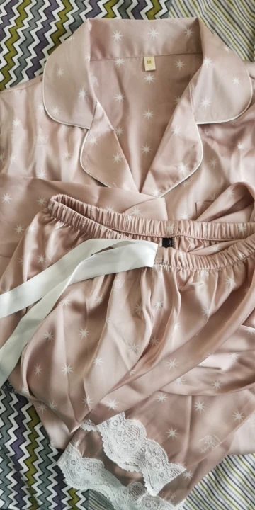 Просто в восторге, это намного лучше, чем я ожидал. Мягкая, тонкая и Драгоценная вещь. Талия не регулируется, но резиновая. Я обязательно куплю еще одну пижаму в этом магазине. Плюс это занимает всего 11 дней