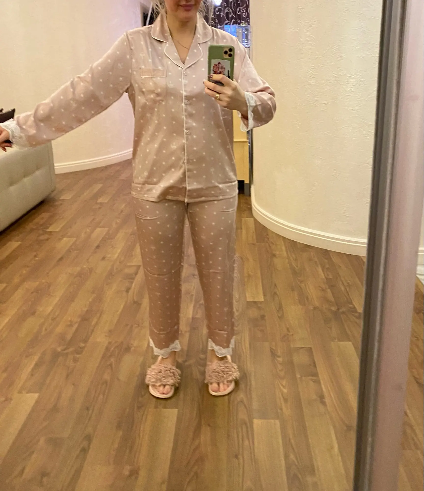 Пижамка супер'на свой 42-44брала L Стдит хорошо на рост 164 брючки слегка укорочены.Доставка 12 дней