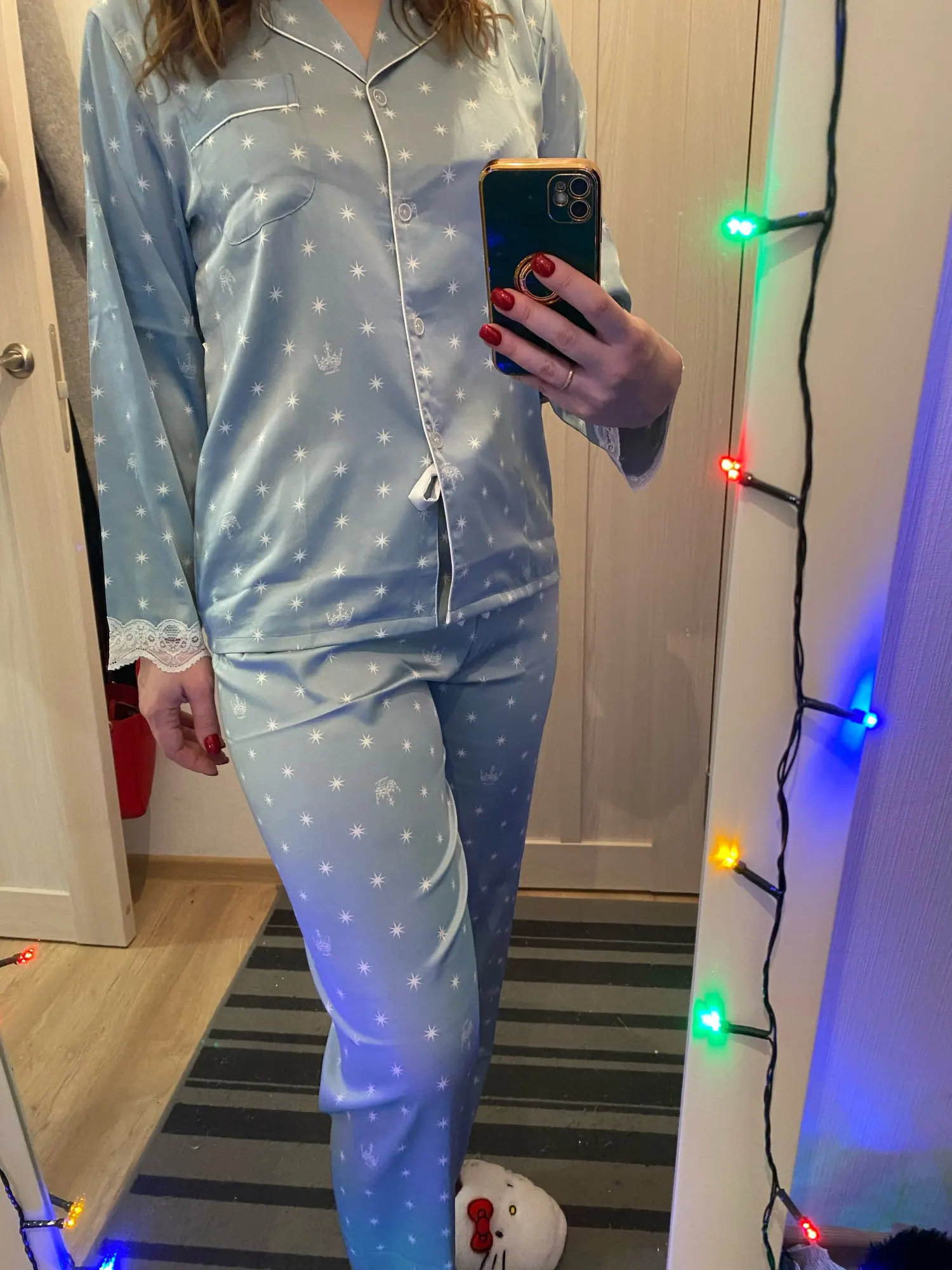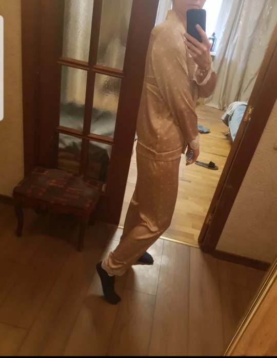 Нет слов. Пижама просто восторг. Я в городе не видела в магазине такой красоты а стоит копейки. У нас в Челябинске по 4-5 тысяч такие и то рядом не стояли по качеству и пошиву. На свой 44-46 заказала хл и как хотела как на моделе свободно. К телу оочень приятная. Ну просто нет. Слов теперь ещё чёрную хочу. Рекомендую 100% пришло за 10 дней