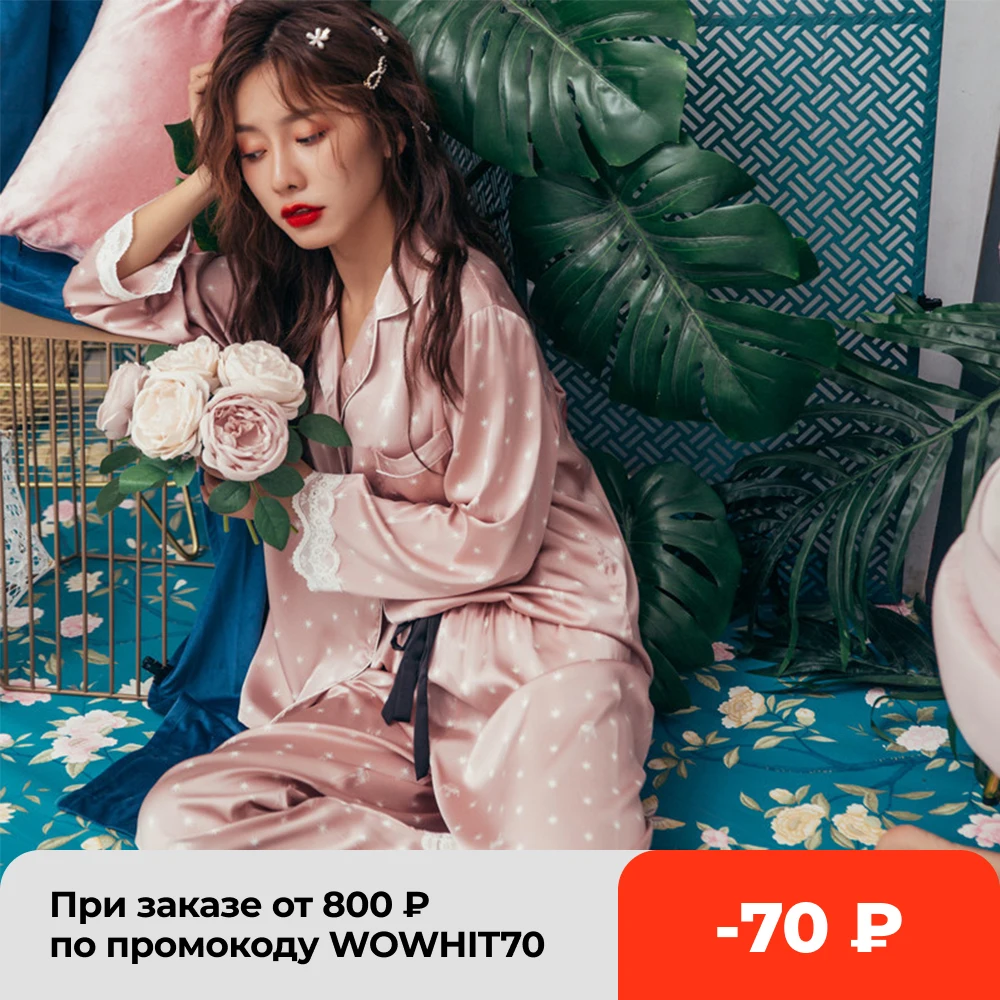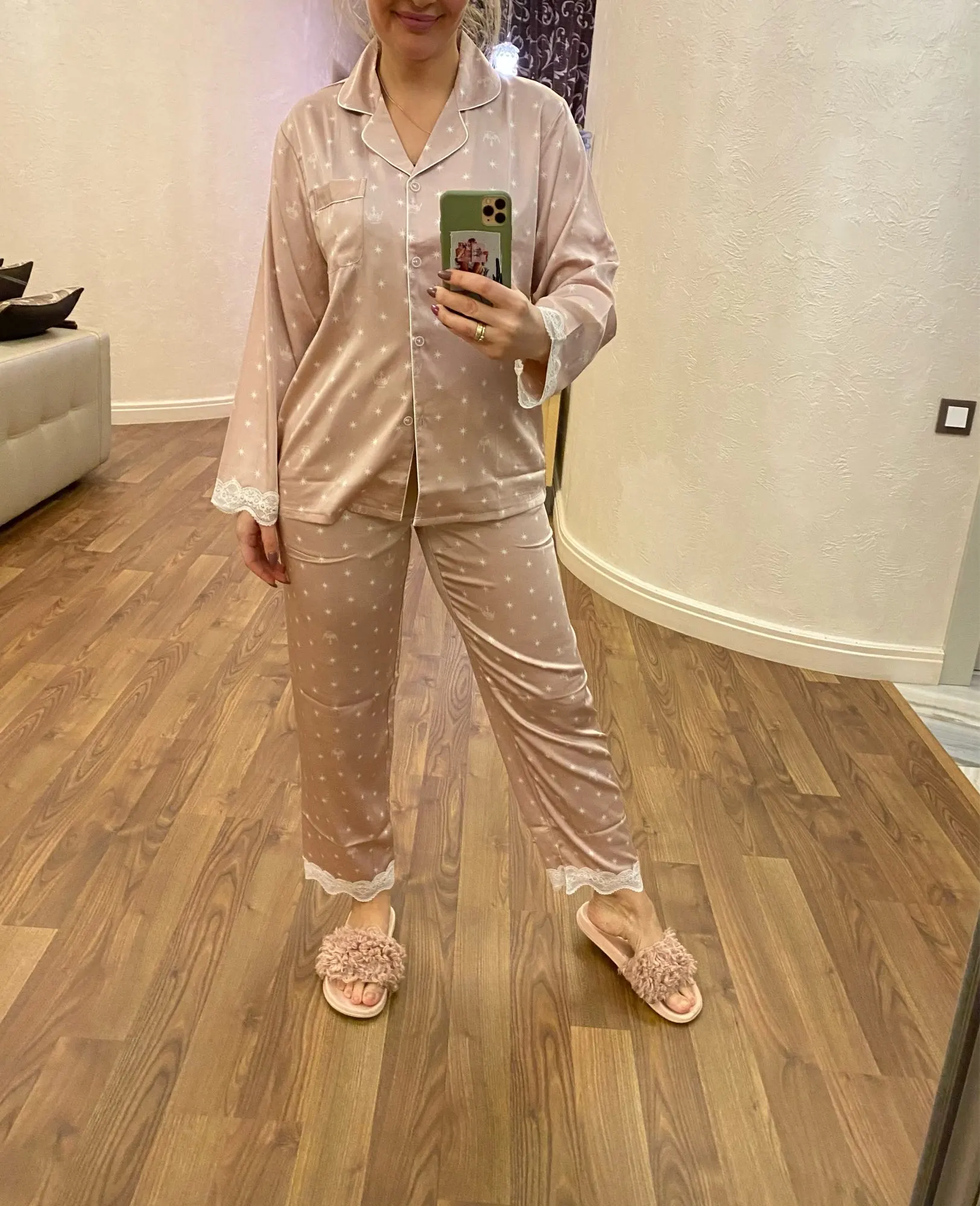Женский пижамный комплект Lisacmvpnel, кружевные брюки с длинным рукавом и манжетами, Костюм Пижама