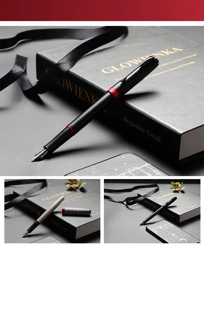 Ручка перьевая JINHAO 75, Вольфрамовая сталь, с черными чернилами