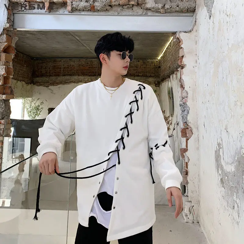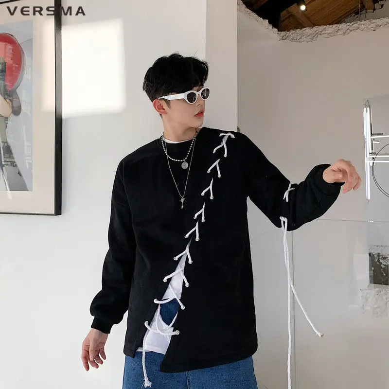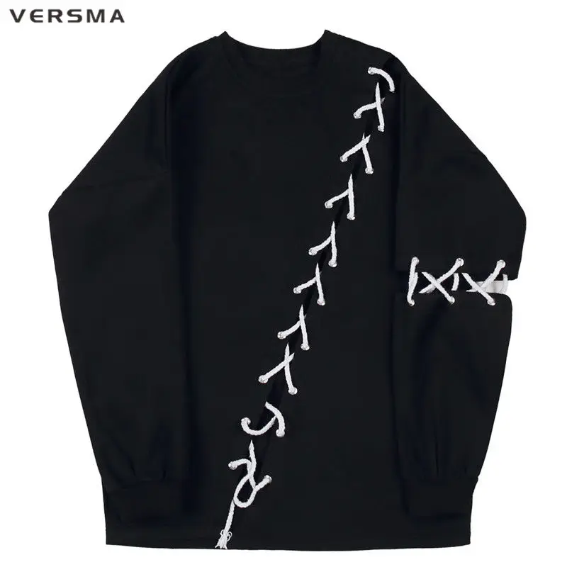 Винтажные толстовки VERSMA в стиле Харадзюку в стиле пэчворк с лентами Мужская Уличная одежда в стиле хип-хоп свитшот большого размера унисекс Прямая поставка