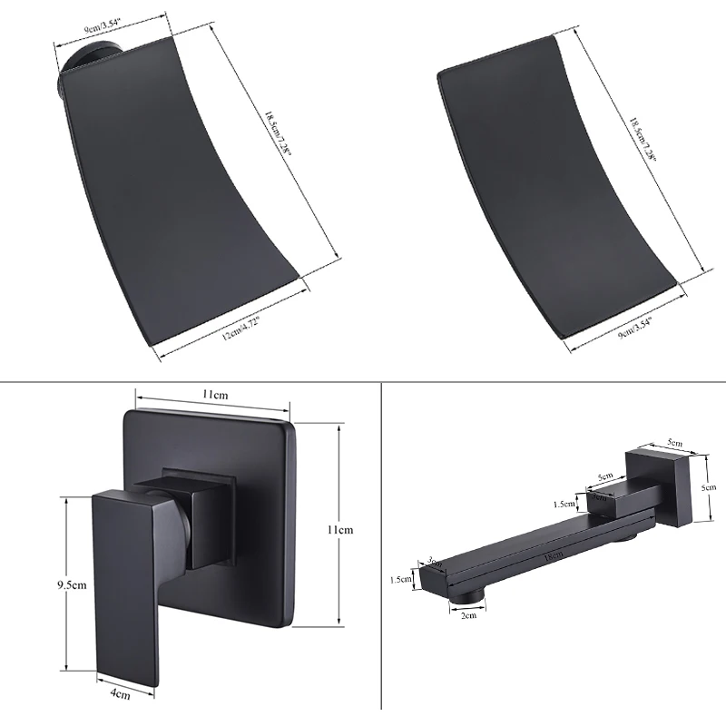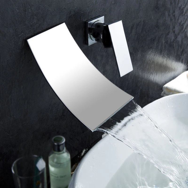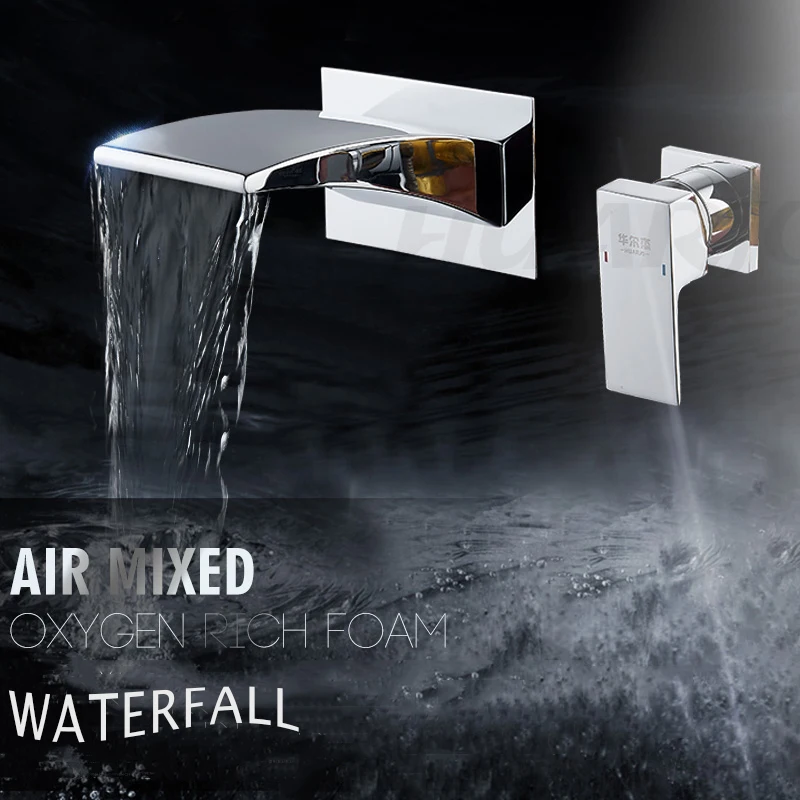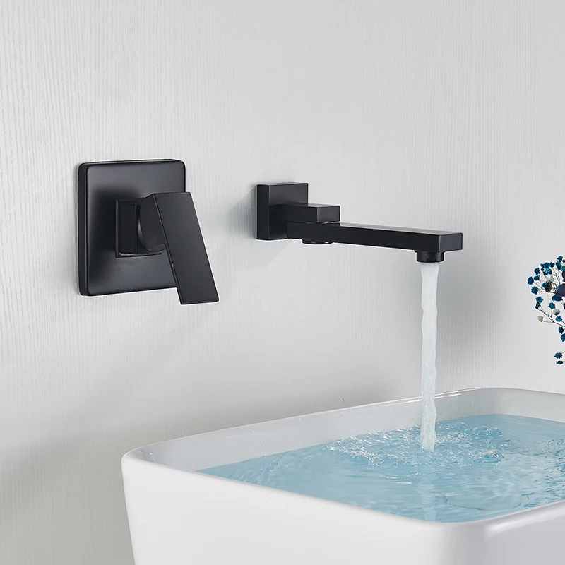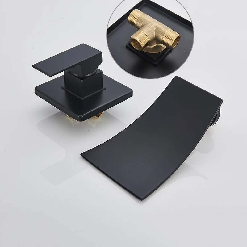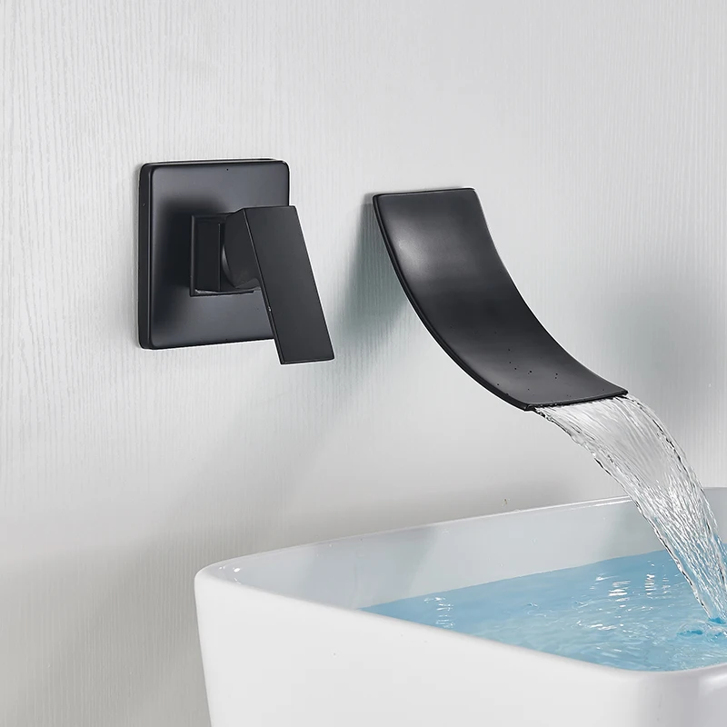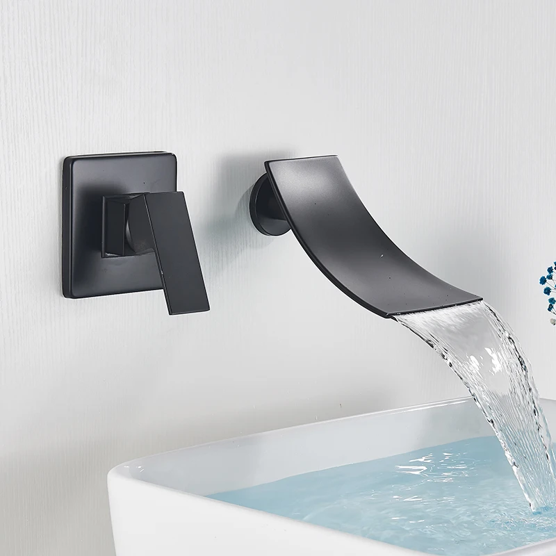 Матовый черный смеситель для раковины SHBSHAIMY, скрытый смеситель для раковины, одна ручка, настенное крепление, встраиваемое Водопад, сплит-тип
