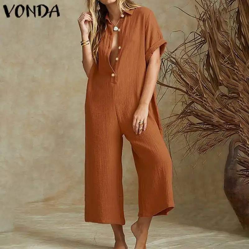 Женский комбинезон с коротким рукавом, с широкими штанинами, на лето, 2021